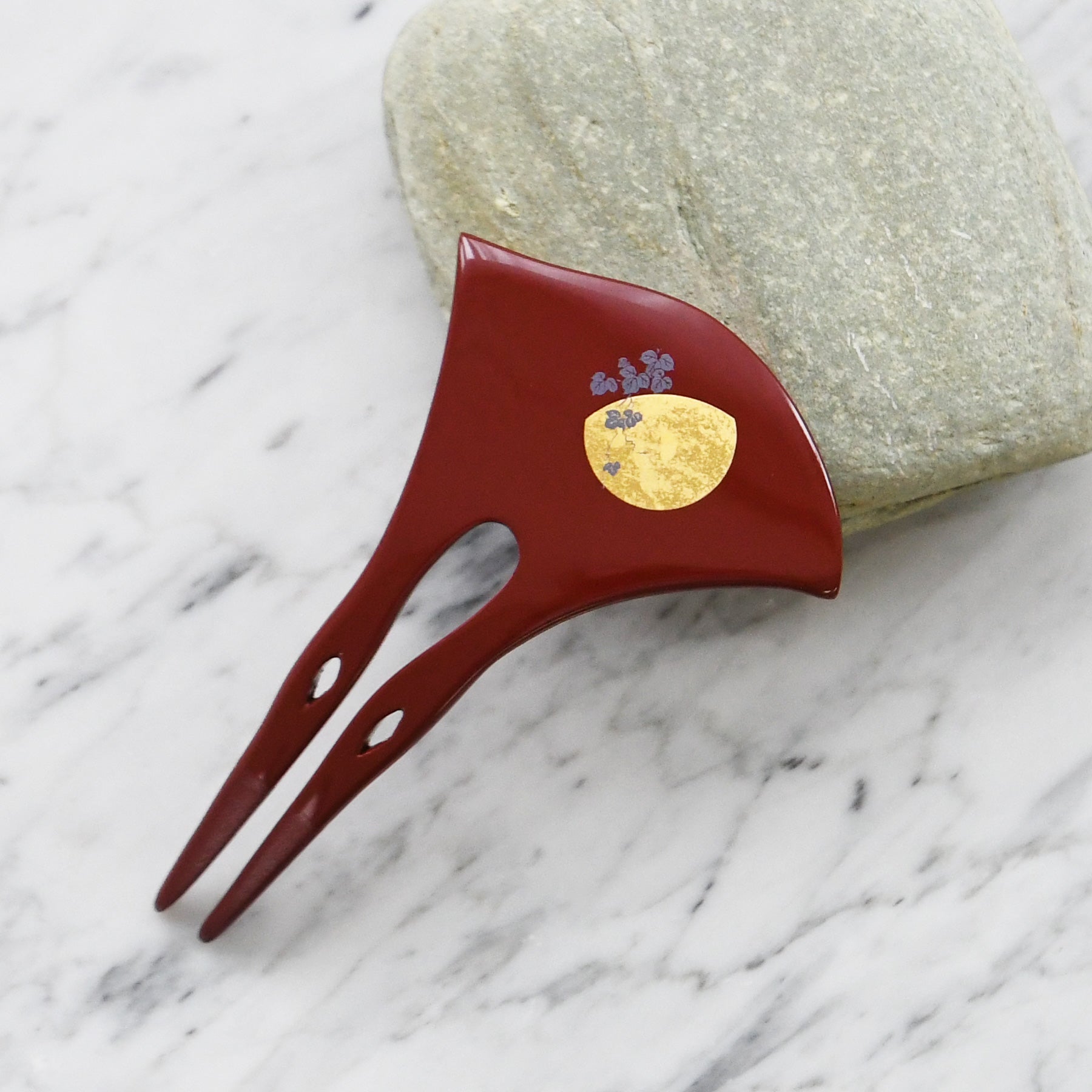 【髪飾り 蒔絵かんざし 十三夜の月と葡萄の葉】バチ型 扇形 簪 ヘアアクセサリー 日本製 浴衣や成人式振袖、卒業式袴や普段のヘアアレンジにも(5432632100)