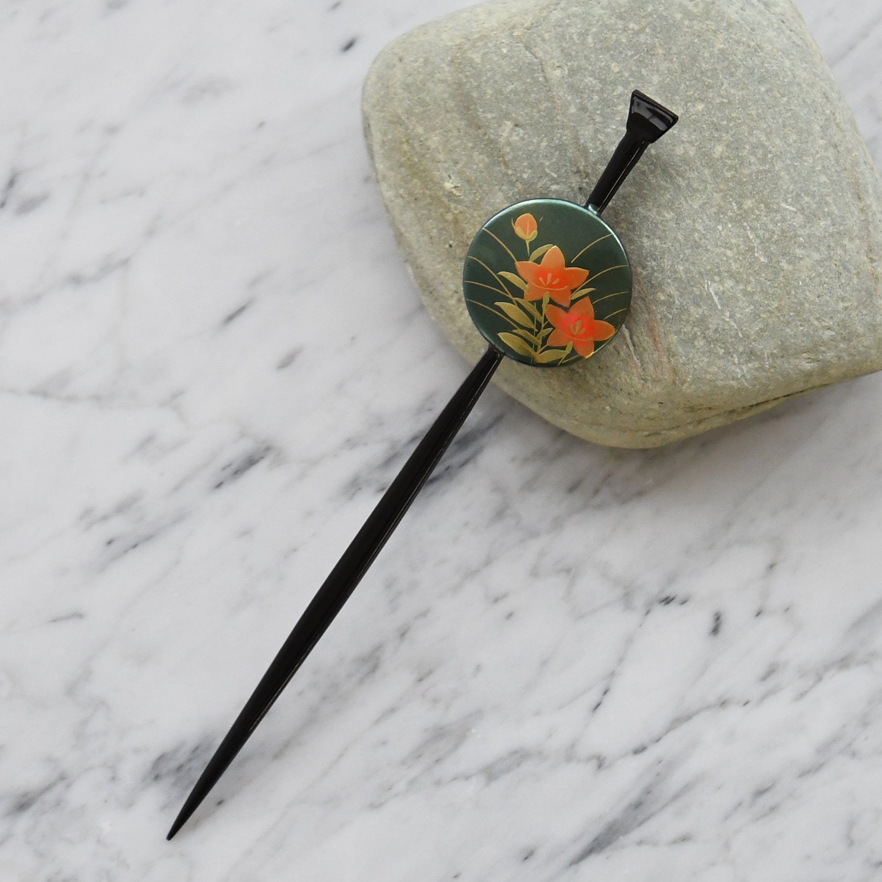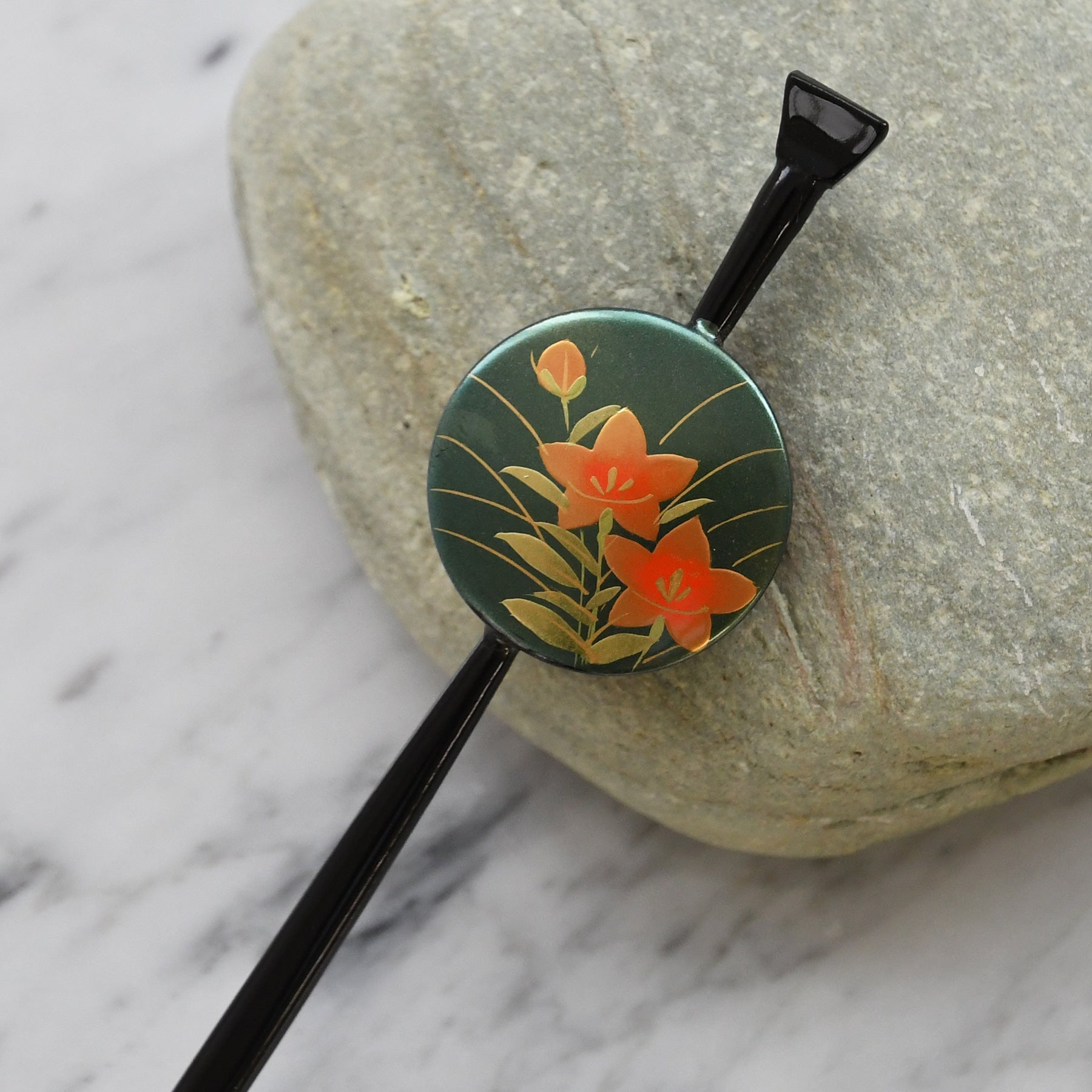 艶やかな黒のかんざしに、桔梗の花がゆれる上品な一本。