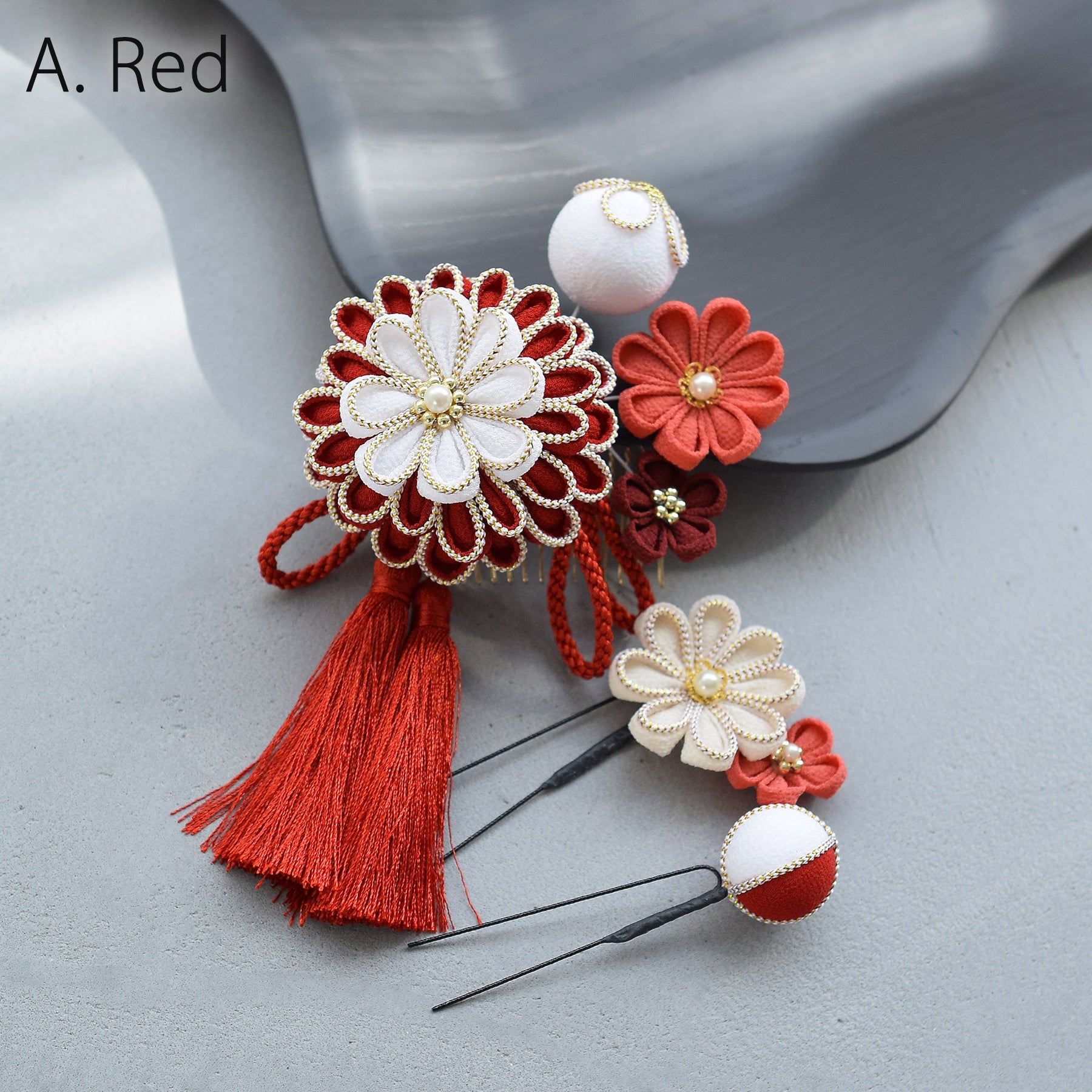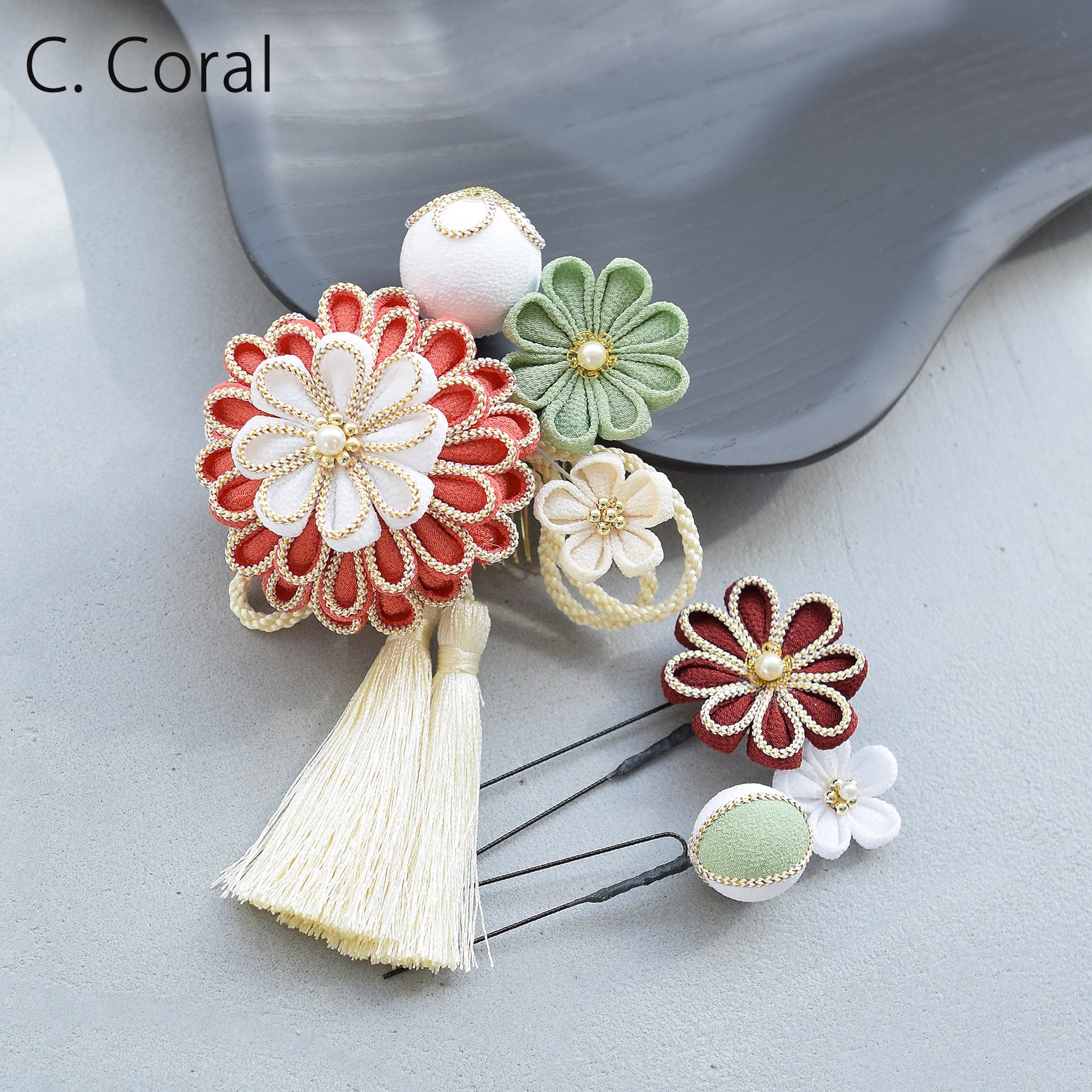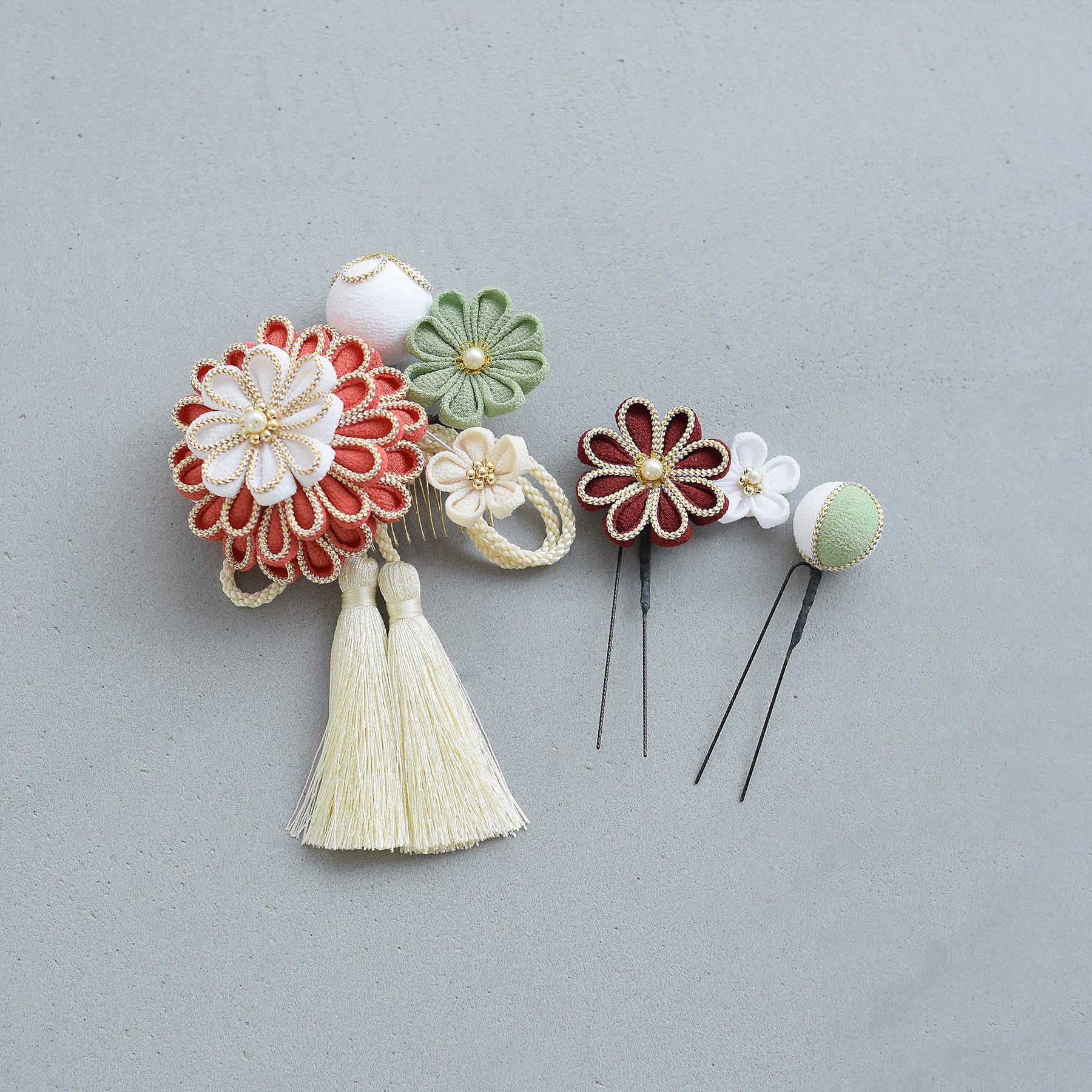 【髪飾り 菊華 コームUピン3点セット】つまみ細工 ヘアアクセサリー 日本製 成人式振袖や卒業式袴にも(5432633801)【取り寄せ品】