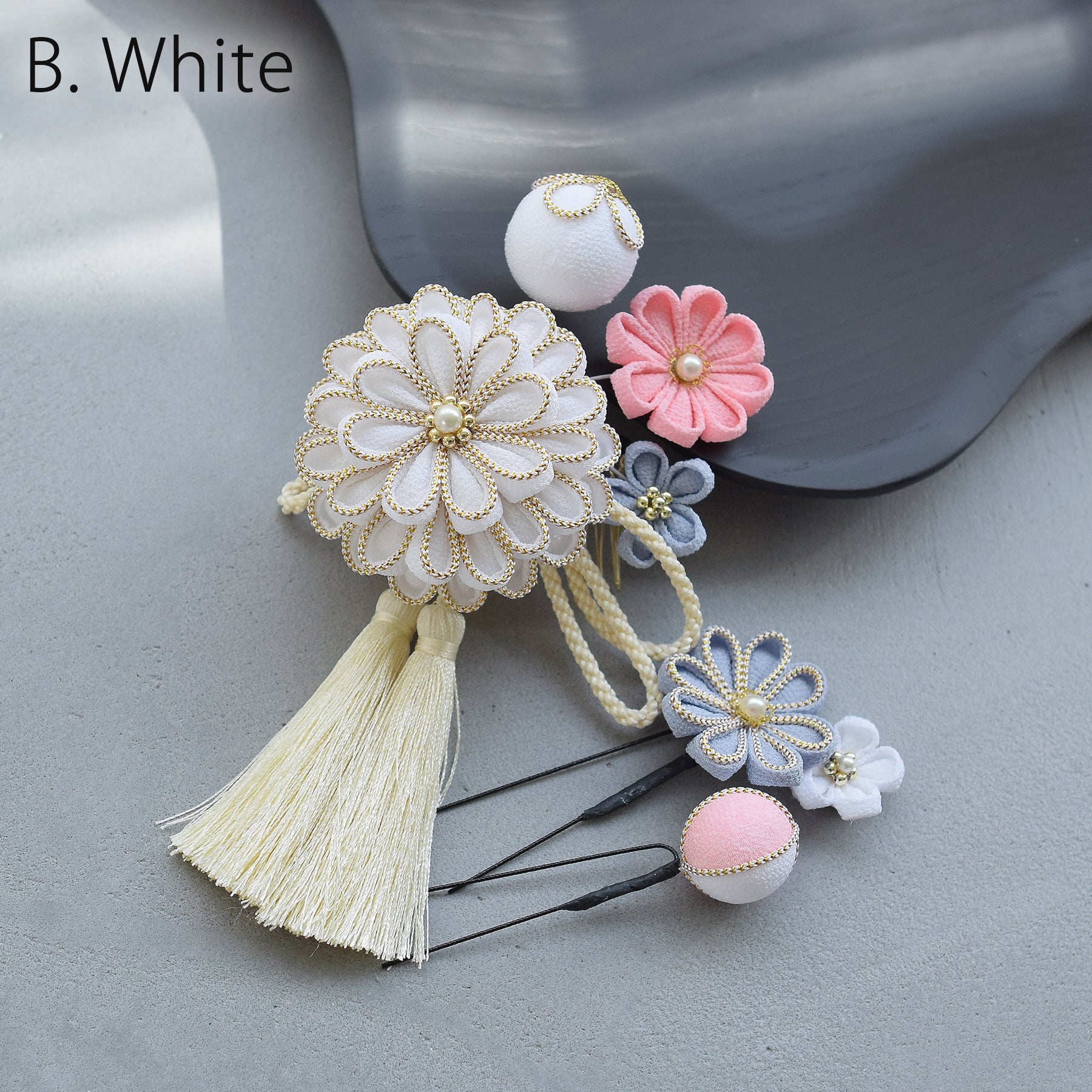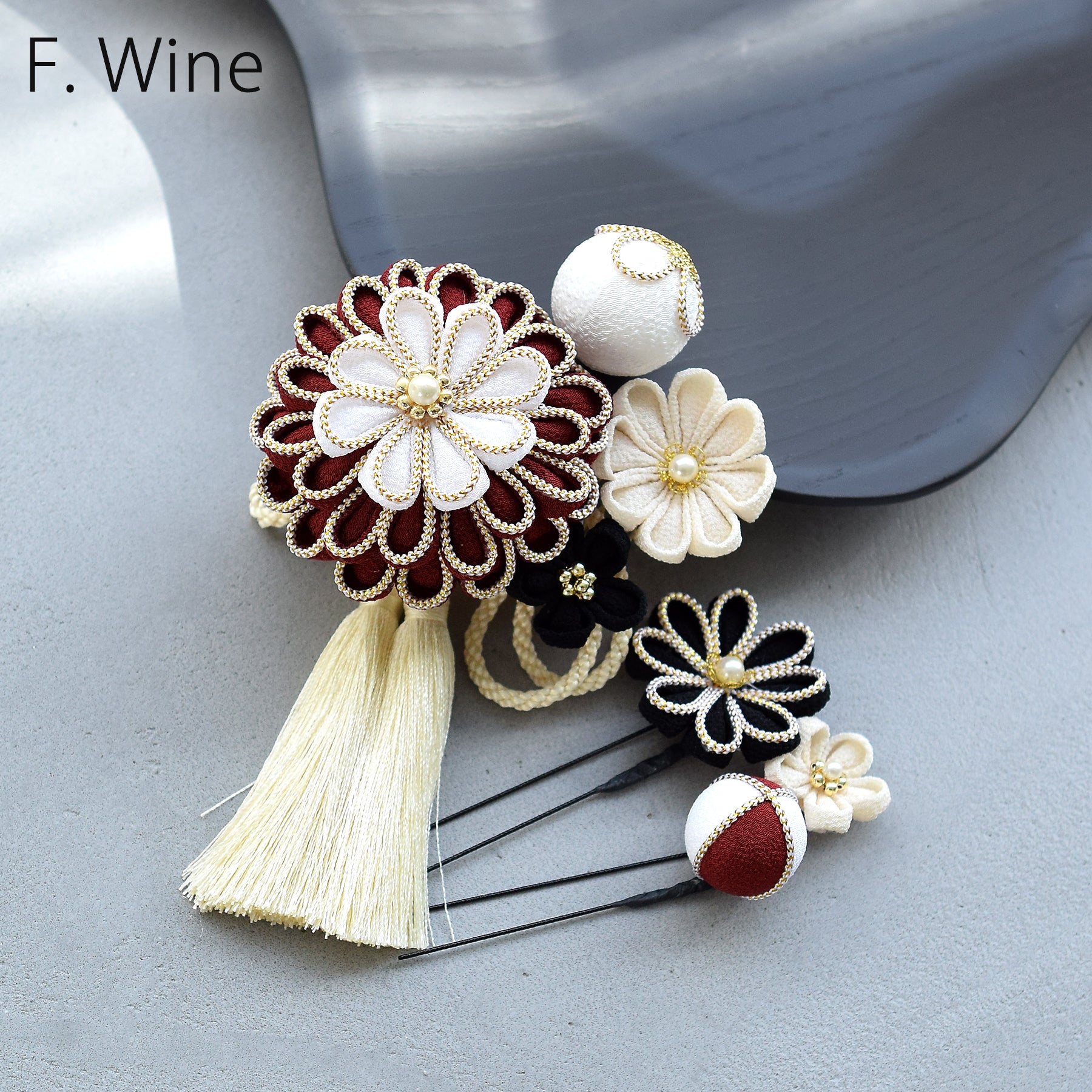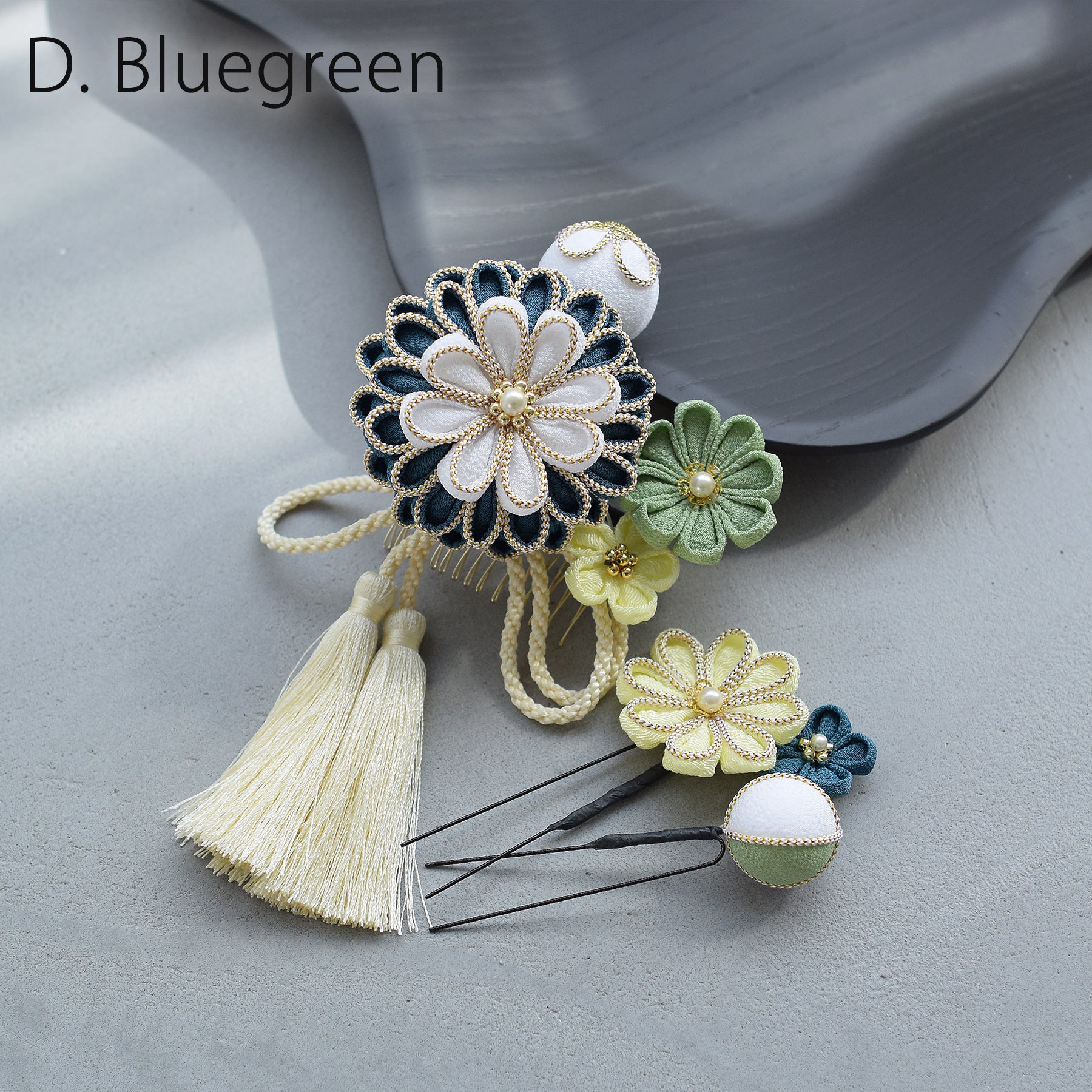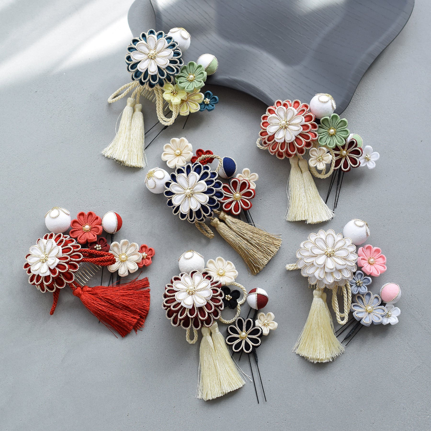 【髪飾り 菊華 コームUピン3点セット】つまみ細工 ヘアアクセサリー 日本製 成人式振袖や卒業式袴にも(5432633801)【取り寄せ品】