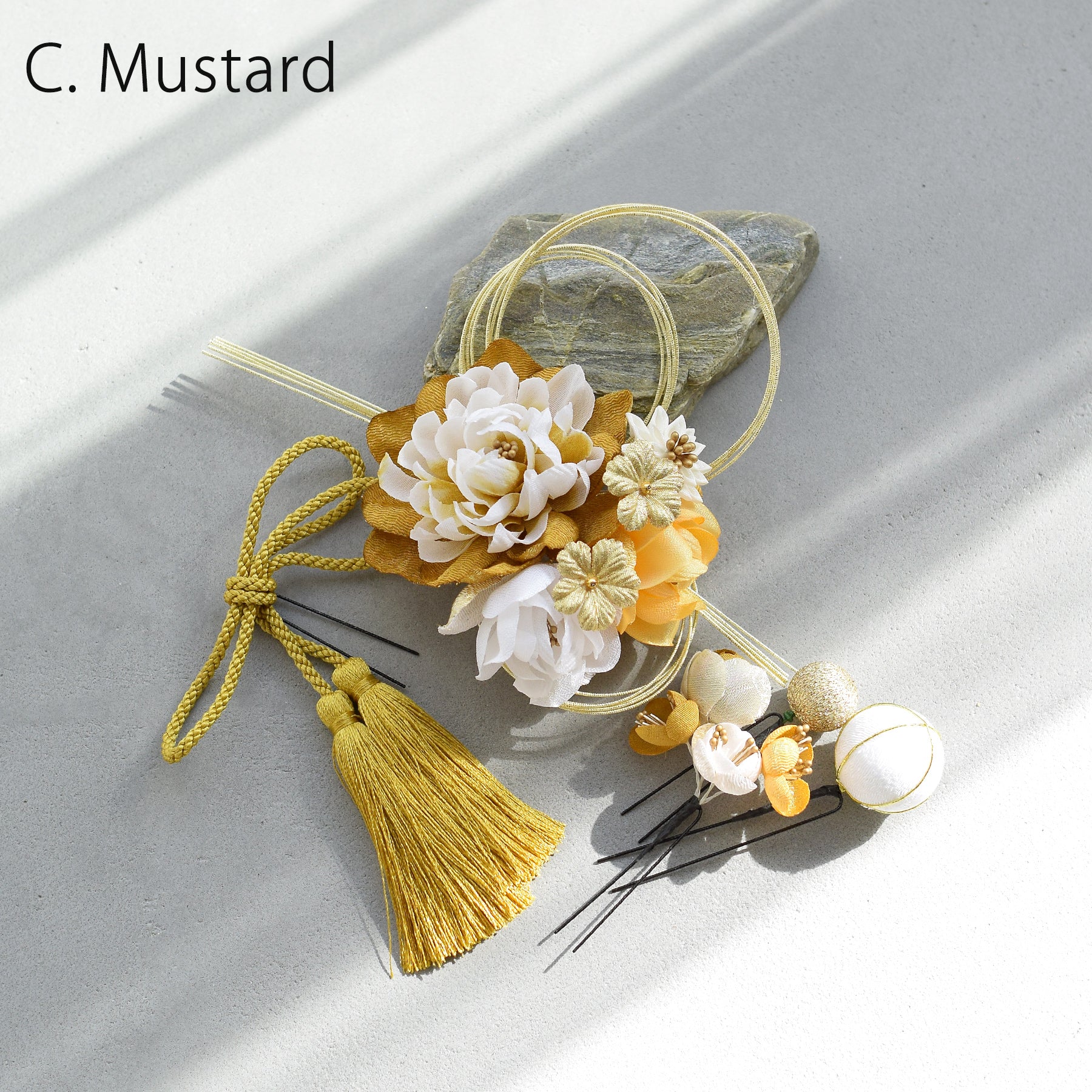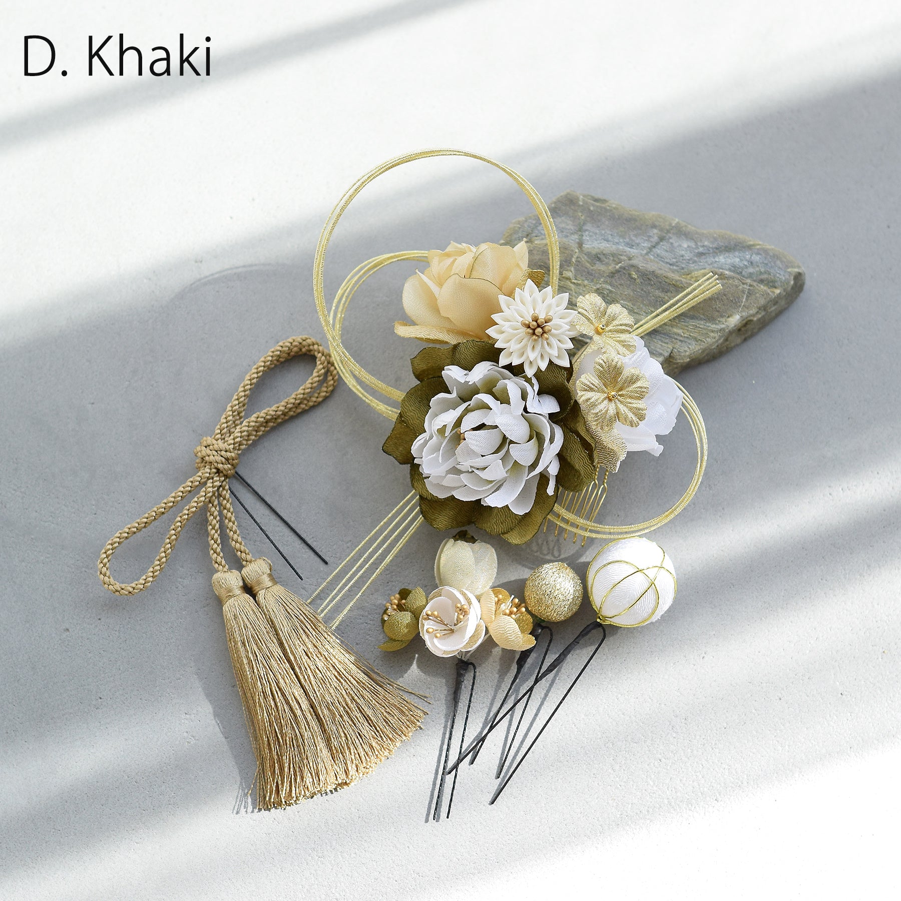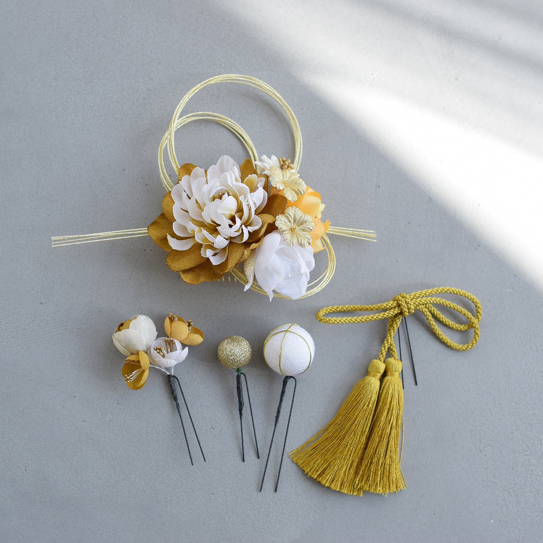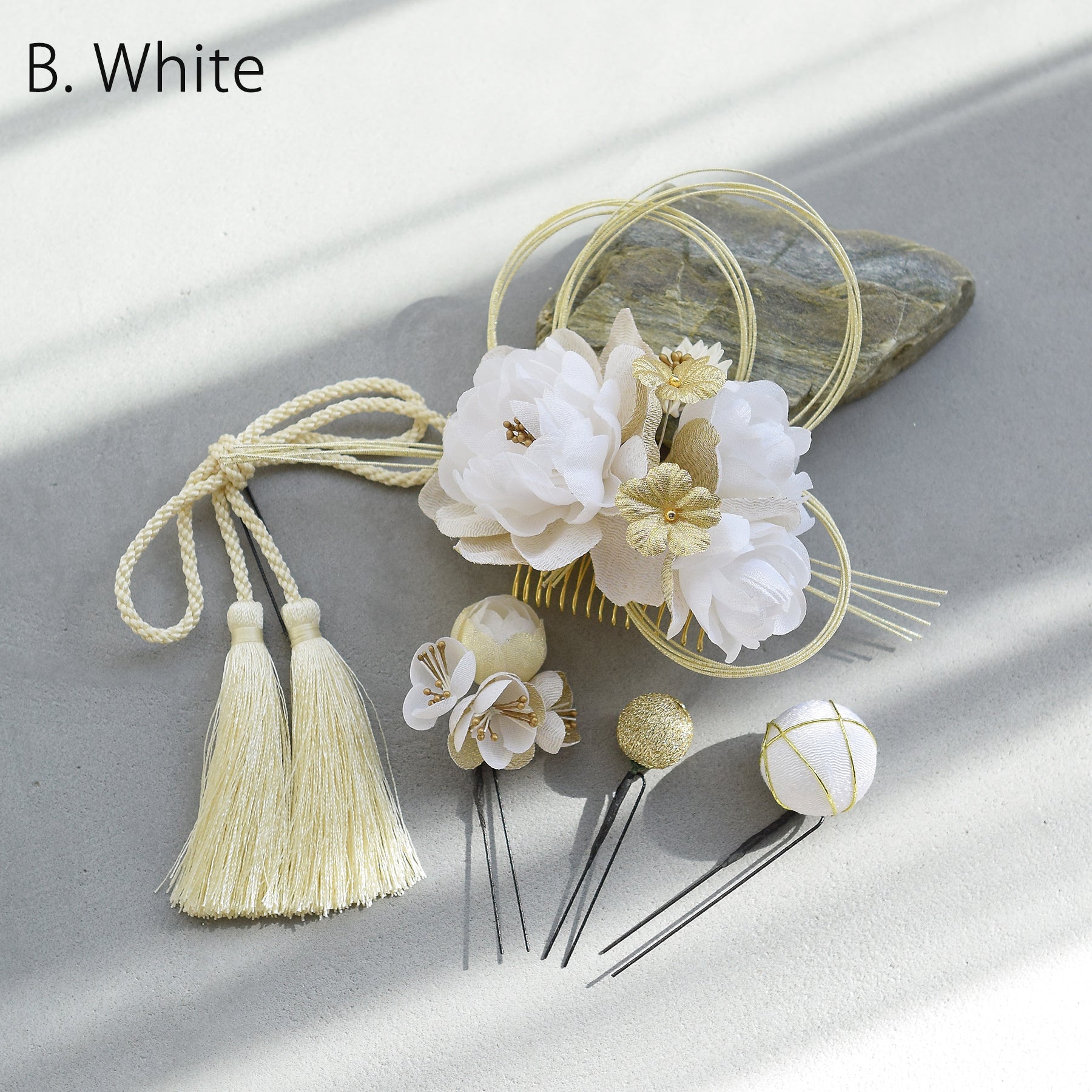 【髪飾り 牡丹・梅・桜&水引・タッセル コームUピン5点セット】花 水引 玉 タッセル ヘアアクセサリー 日本製 成人式振袖や卒業式袴にも(5432637801)【取り寄せ品】