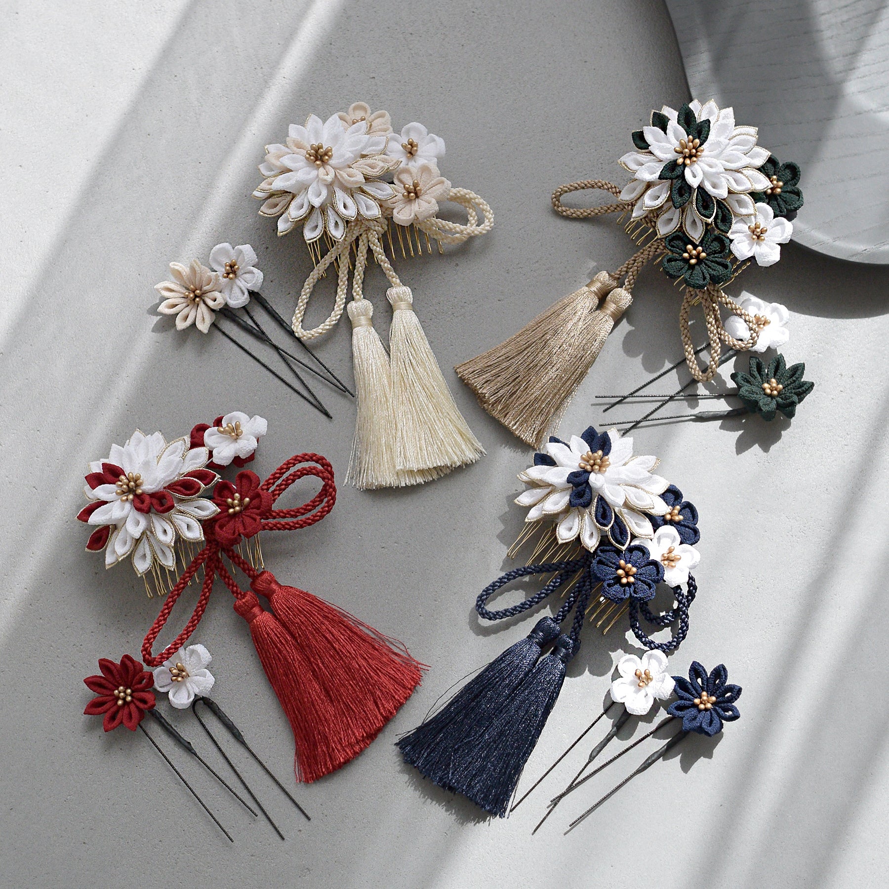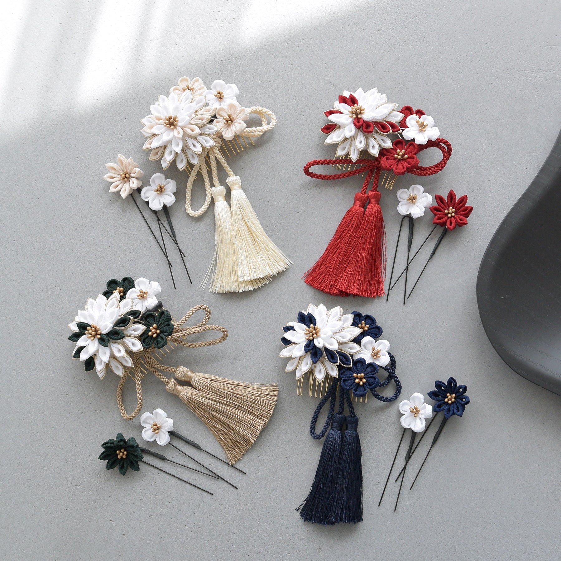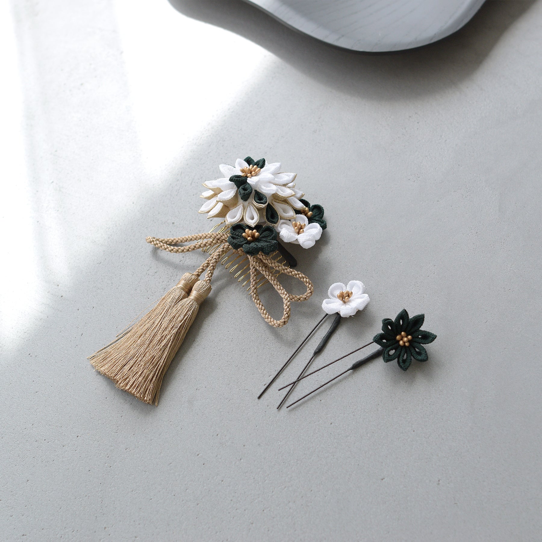 Uピン(つまみ細工・菊) モチーフ:約3cm×約3cm