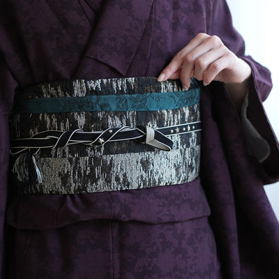 【半幅帯 リバーシブル 翠流光】帯単品 小袋帯 長尺 日本製 細帯 オールシーズン 浴衣 紬 小紋 着物 エメラルドグリーン グレー 黒(5279627200)