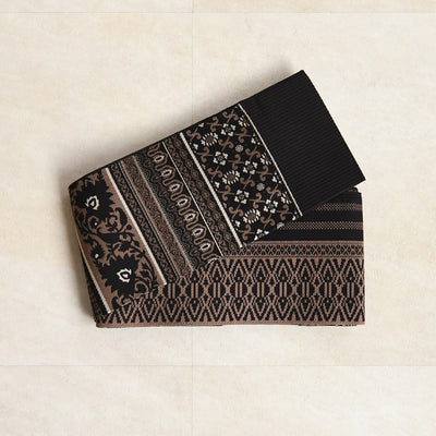 【半幅帯 博多織 インド更紗献上 ブラック×ブラウン】帯単品 小袋帯 長尺 正絹 リバーシブル 日本製 本場筑前博多織 紋小巾袋帯 証紙付き(5279625200)
