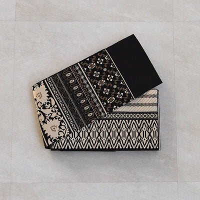 【半幅帯 博多織 牡丹 ブラック×アイボリー】帯単品 小袋帯 長尺 正絹 リバーシブル 日本製 本場筑前博多織 紋小巾袋帯 証紙付き(5279624900)