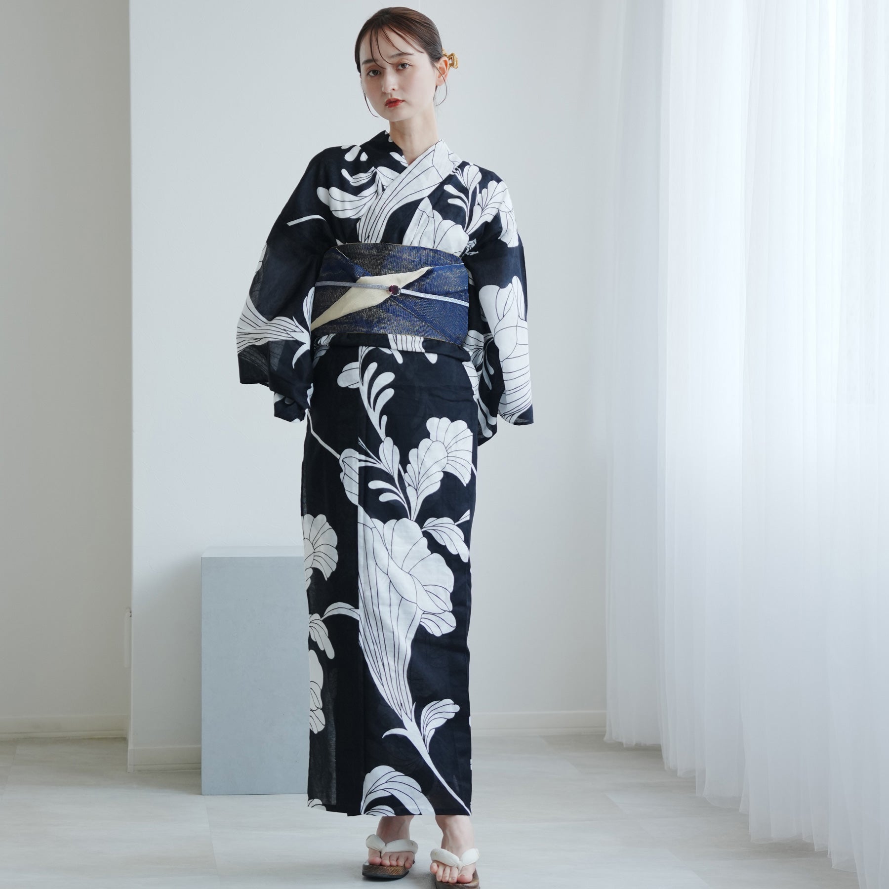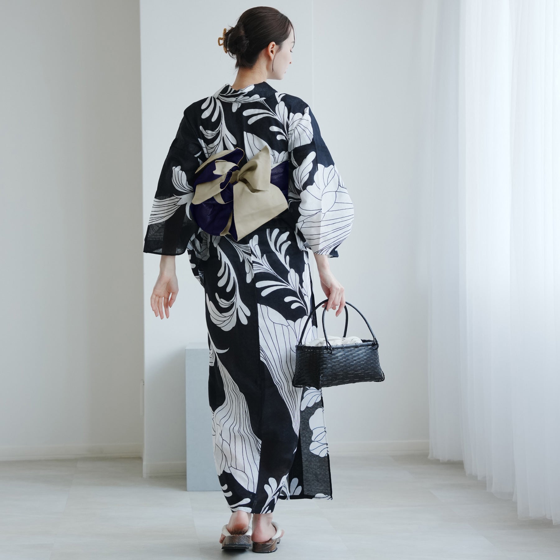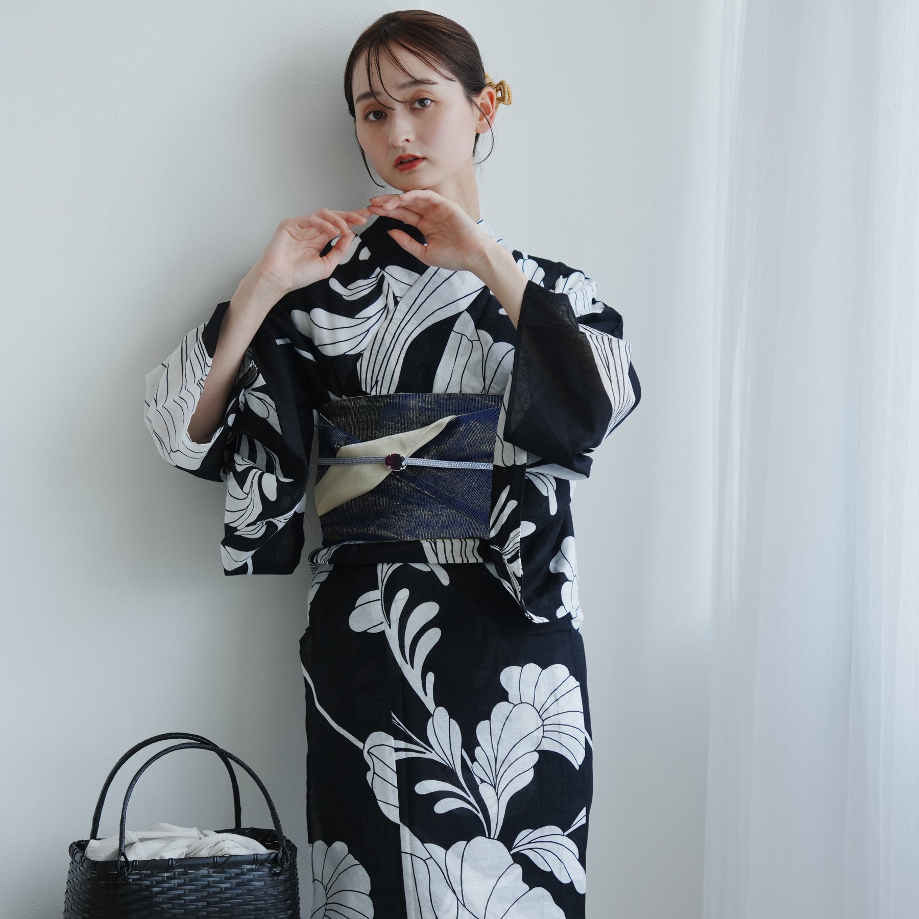【誉田屋源兵衛  浴衣3点セット(浴衣/帯/下駄)シルエットロマンス 黒/白】日本製小幅生地使用  フリーサイズ 手縫い併用国内縫製(5010289112)