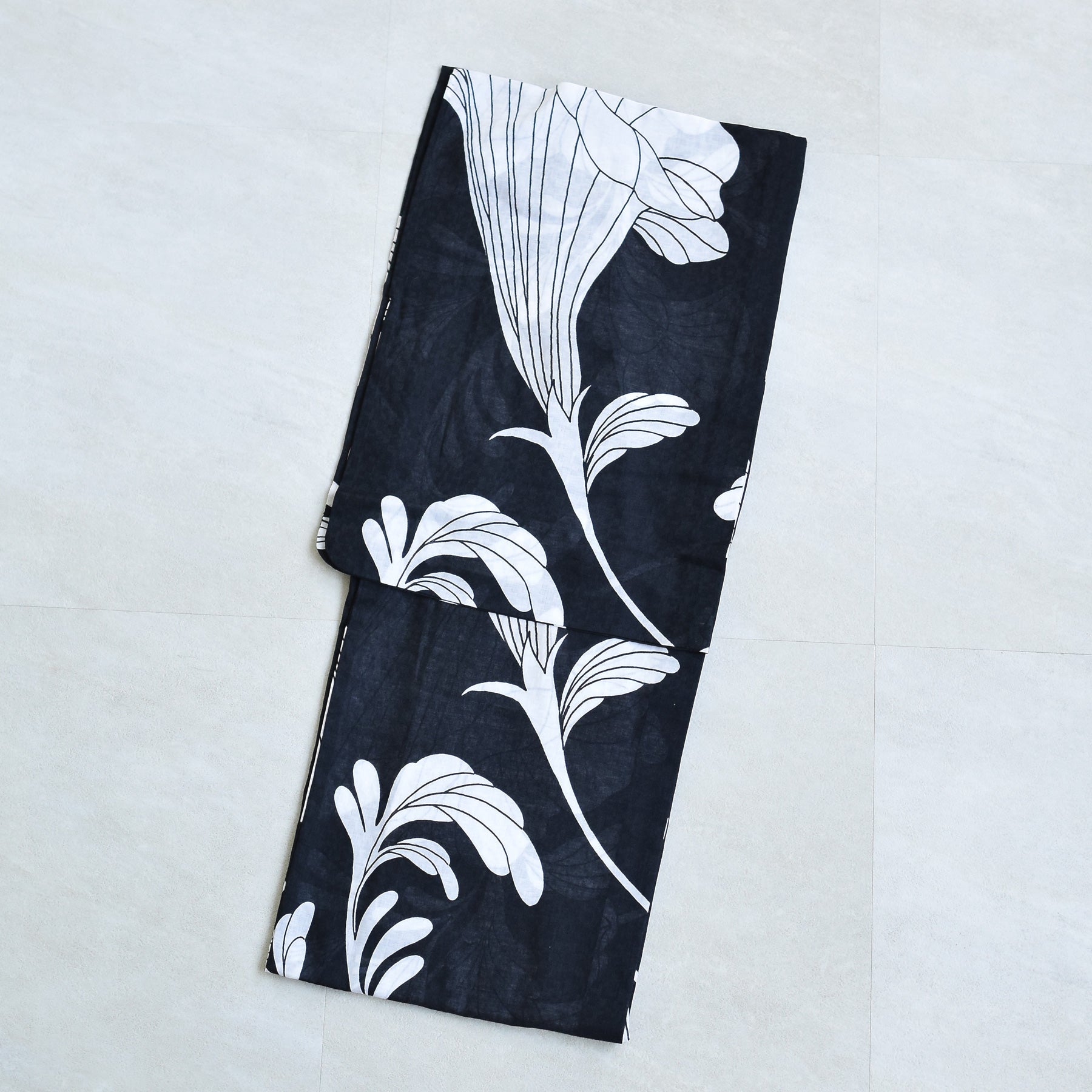 【誉田屋源兵衛 浴衣3点セット(浴衣/帯/下駄)シルエットロマンス 黒/白】日本製小幅生地使用 フリーサイズ 手縫い併用国内縫製(5010289112)