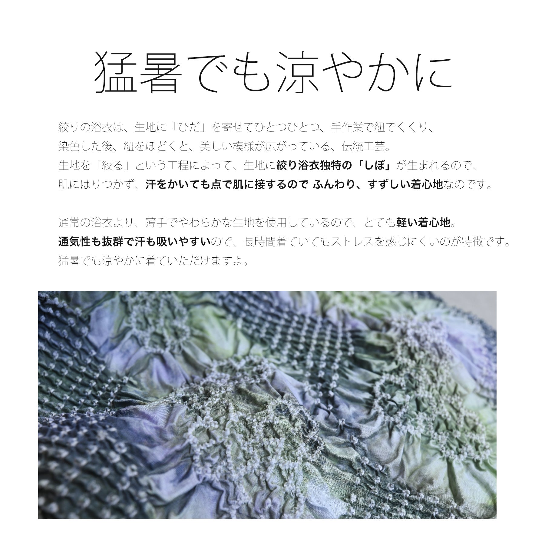 有松絞り特有の凹凸が肌に張りつかず、風が通ります。