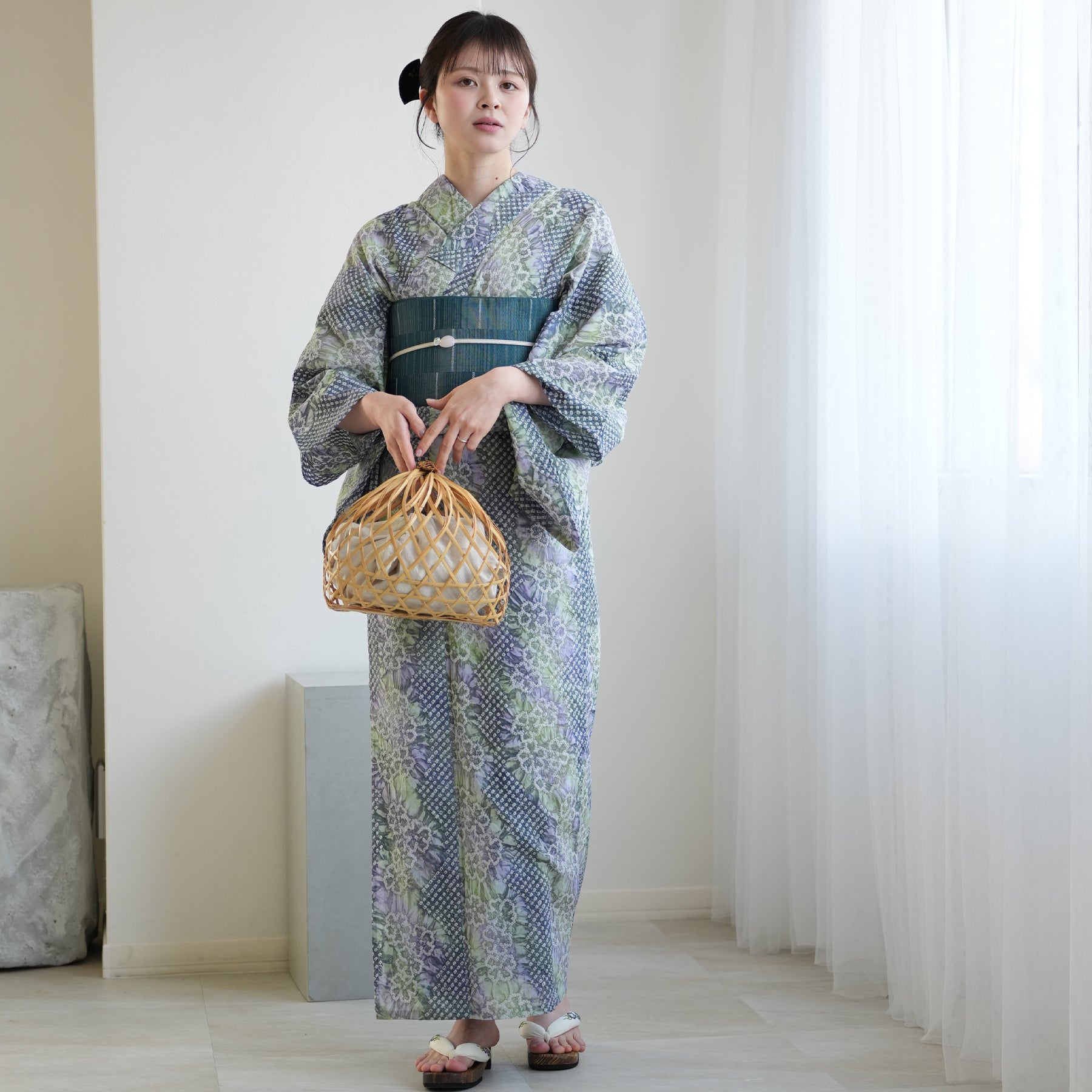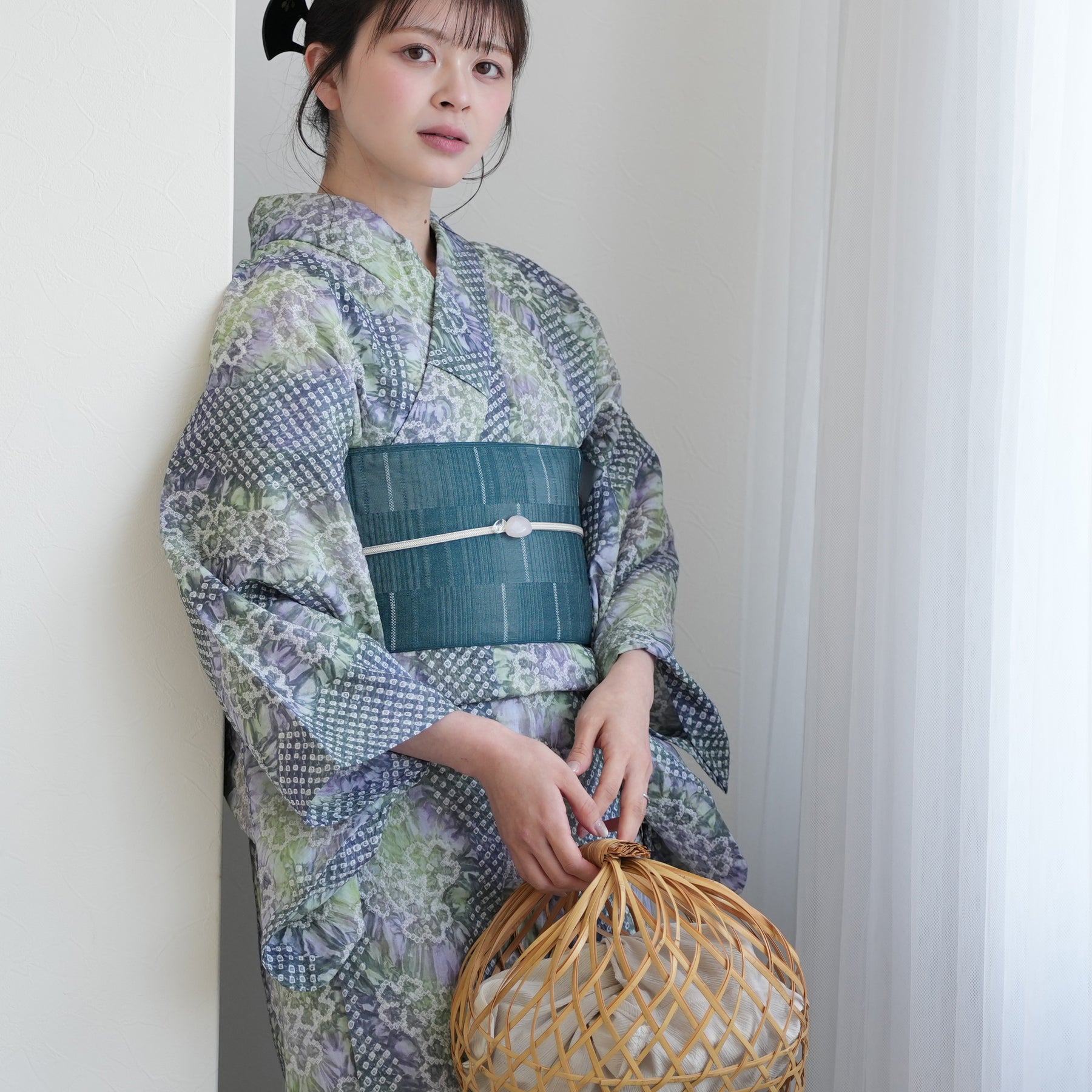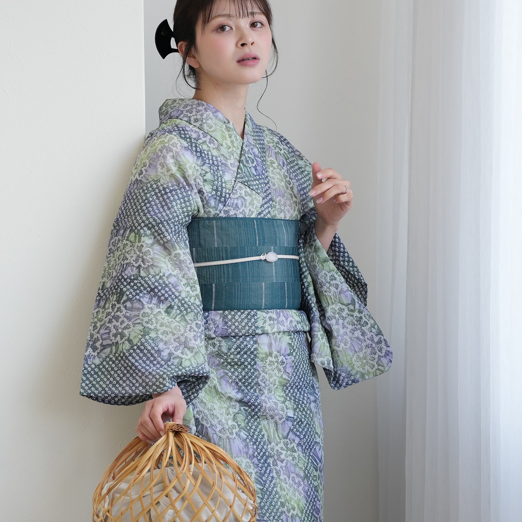 この浴衣は、小物で雰囲気を変えられるのも魅力。