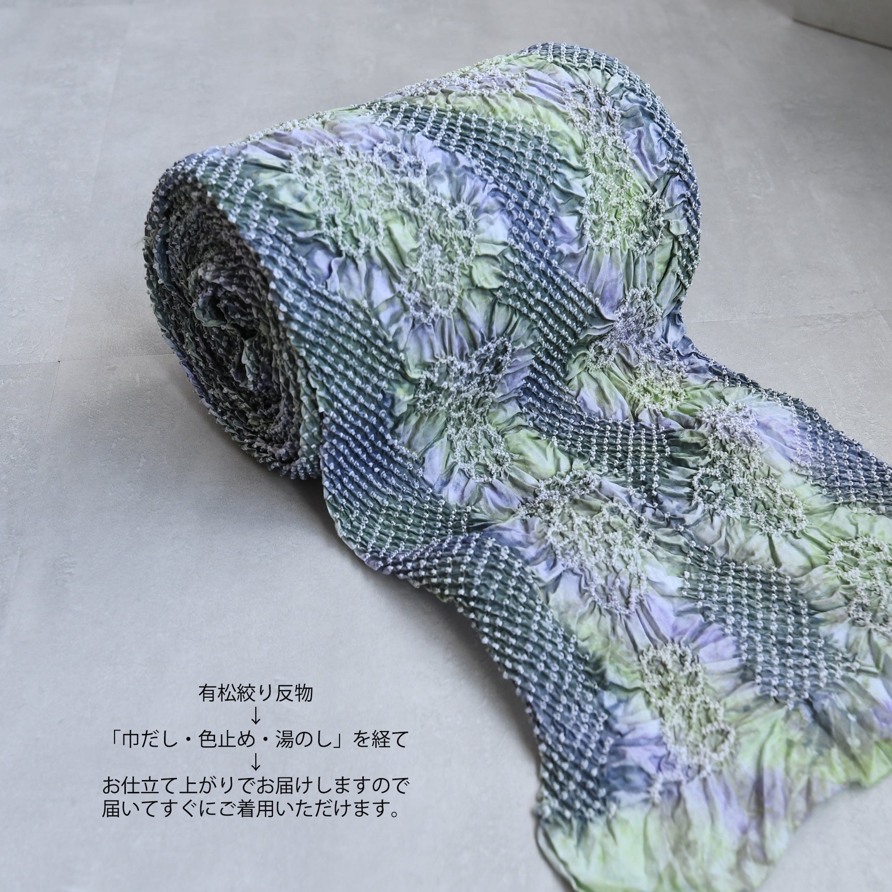 この浴衣は、江戸時代から受け継がれる伝統工芸 有松絞り を用いて染め上げた一枚。