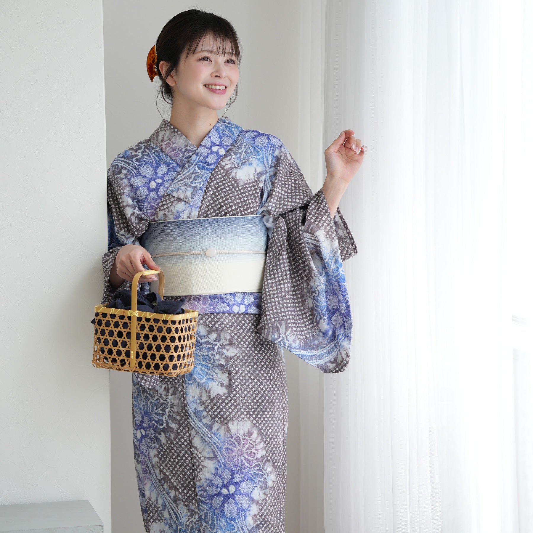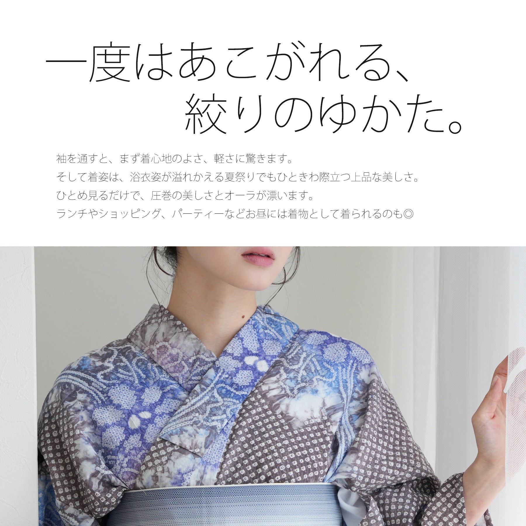 浴衣に袖を通すと、肌にふわりと触れる軽やかな感触。まるでガーゼのようなやさしさに、思わず心までほどけていくようです。