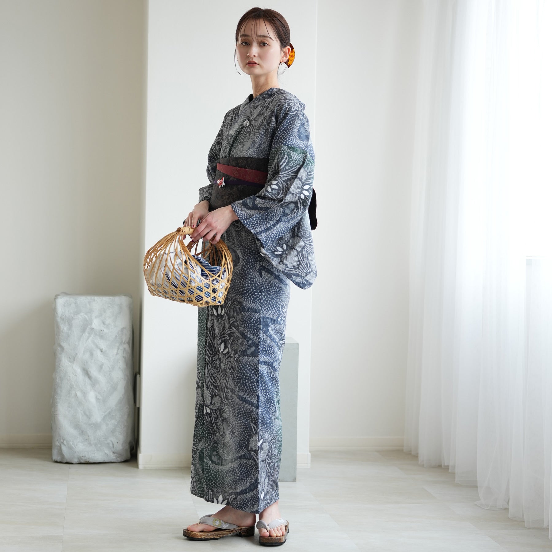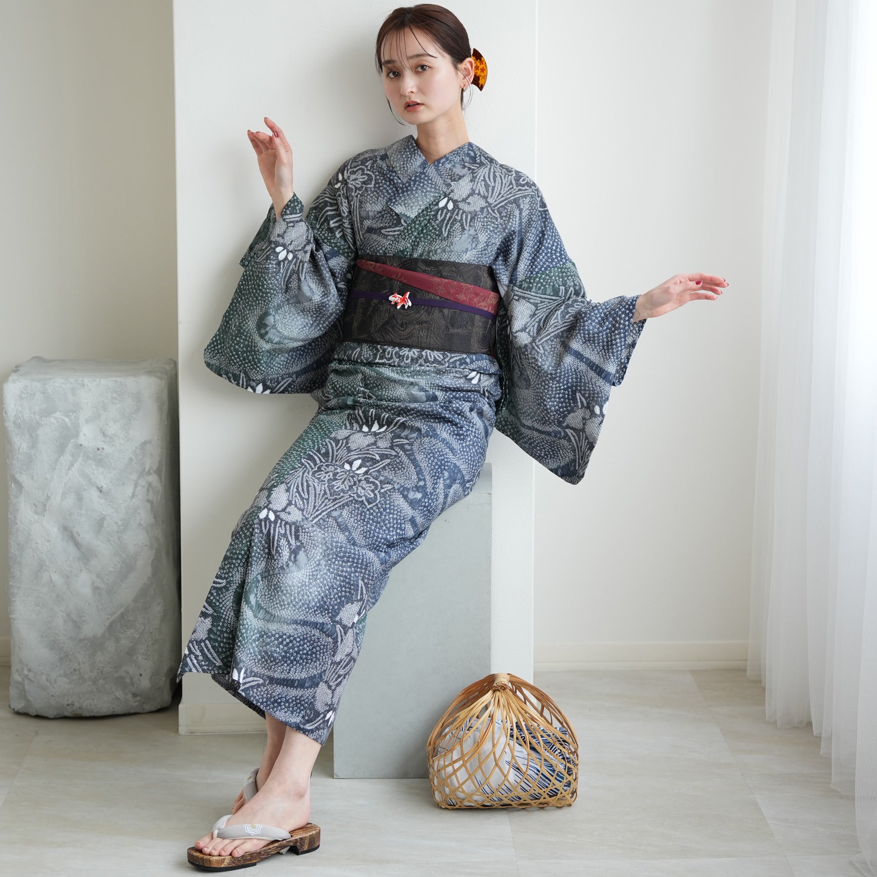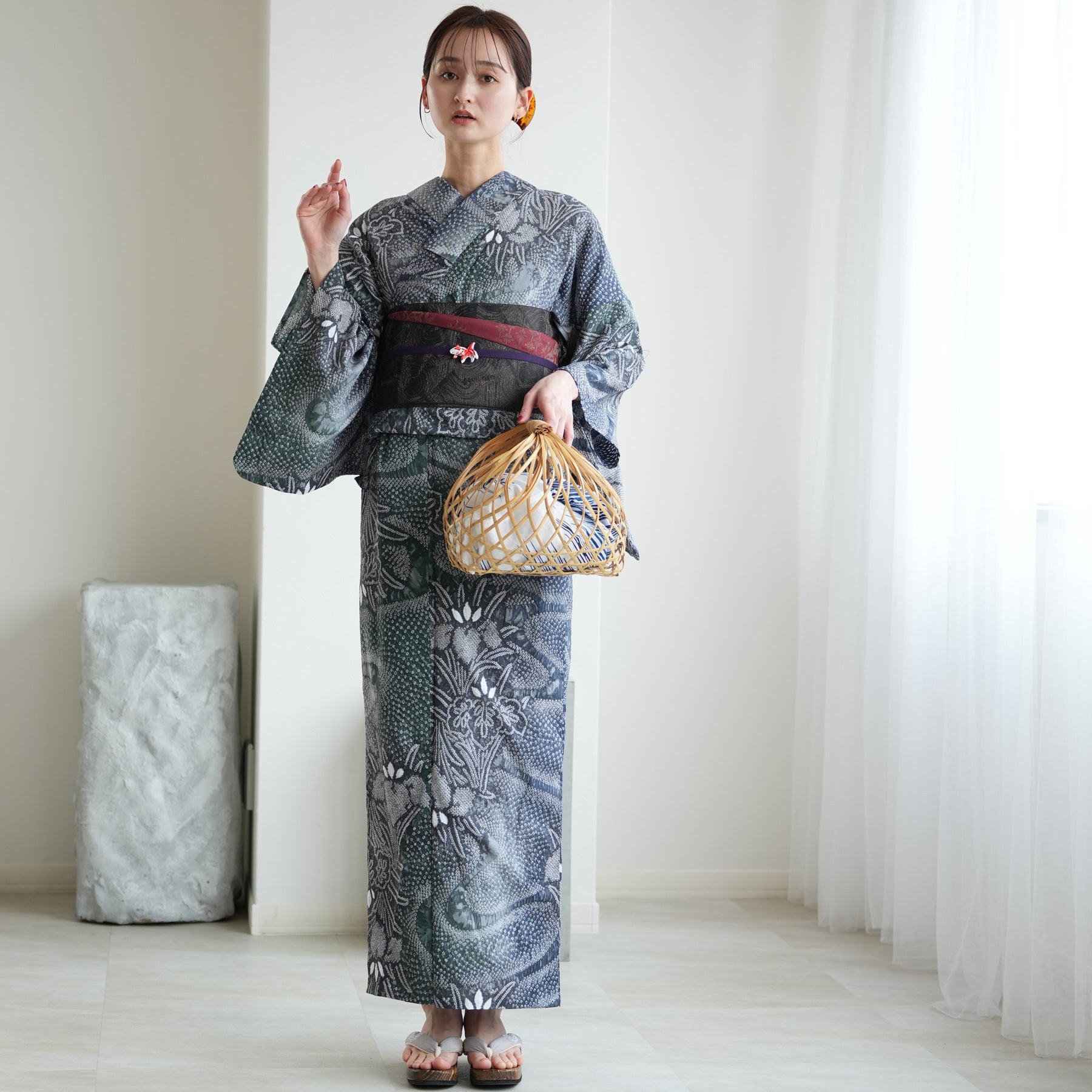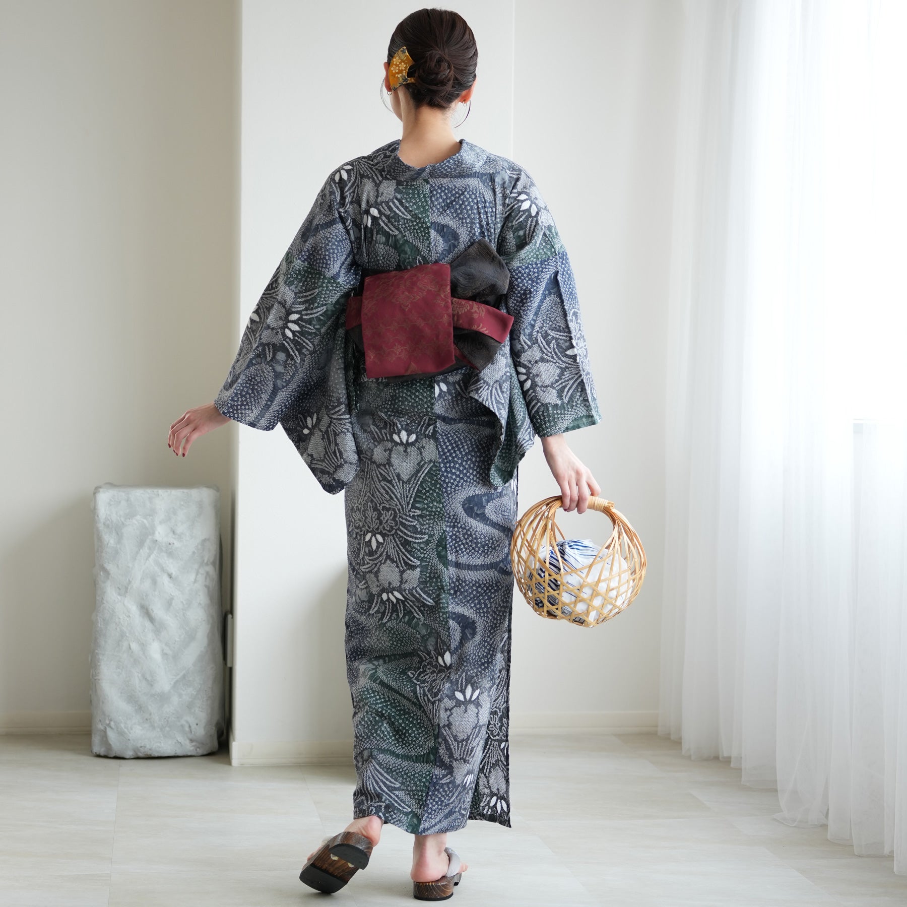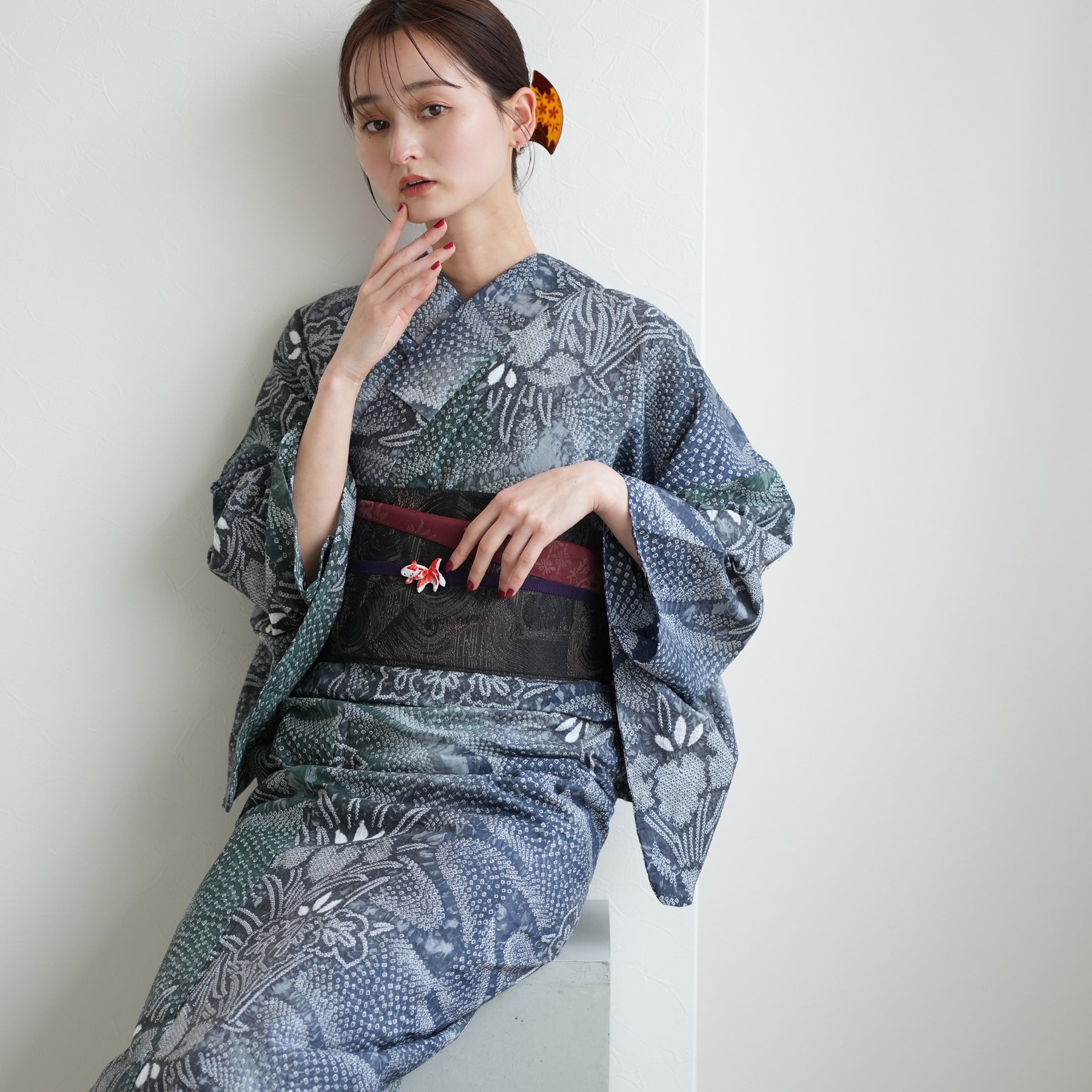 ダークトーンの洗練された配色は、現代的なジュエリーやモダンなバッグとも見事に調和。和装を都会的なスタイルで楽しみたい方におすすめです。