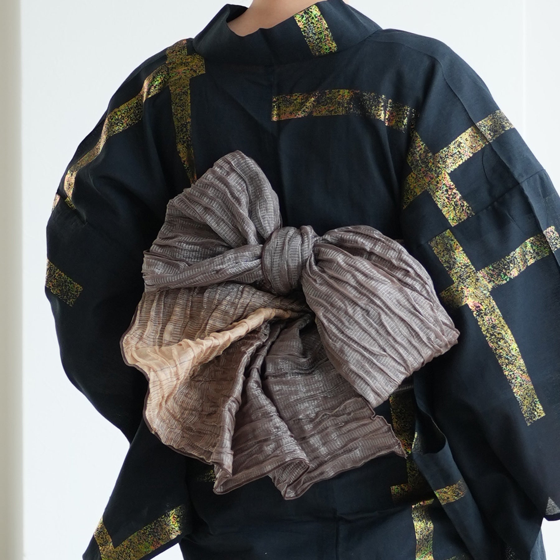 セットの帯は、箔の力強さを引き立てるシャンパンゴールドやベージュ系のシックなトーン。