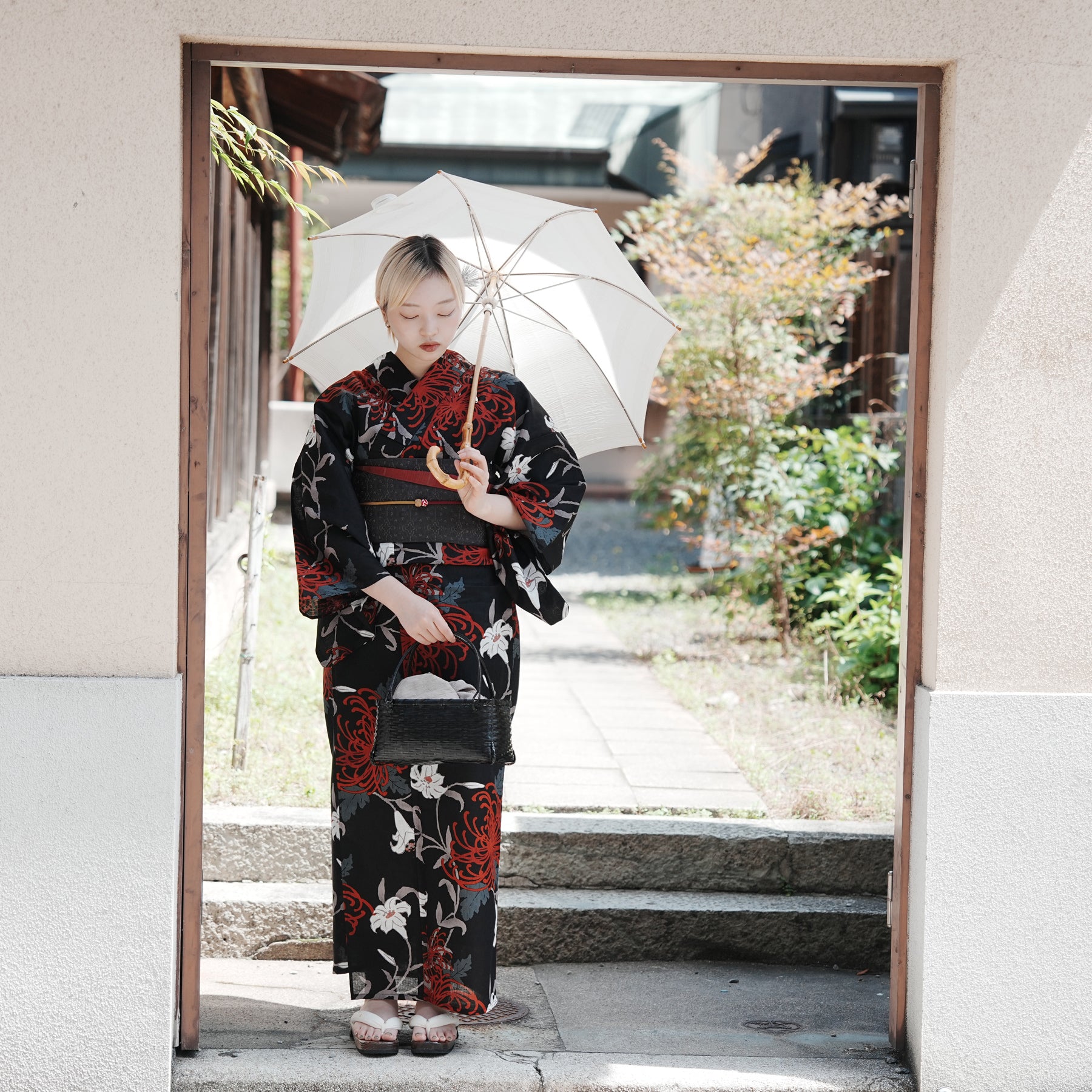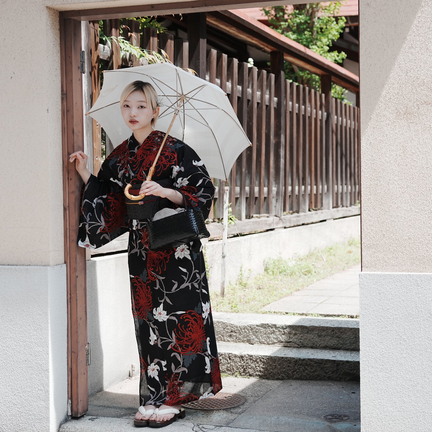 情熱を秘めた黒。漆黒に映える「赤い糸菊」で主役の夏を