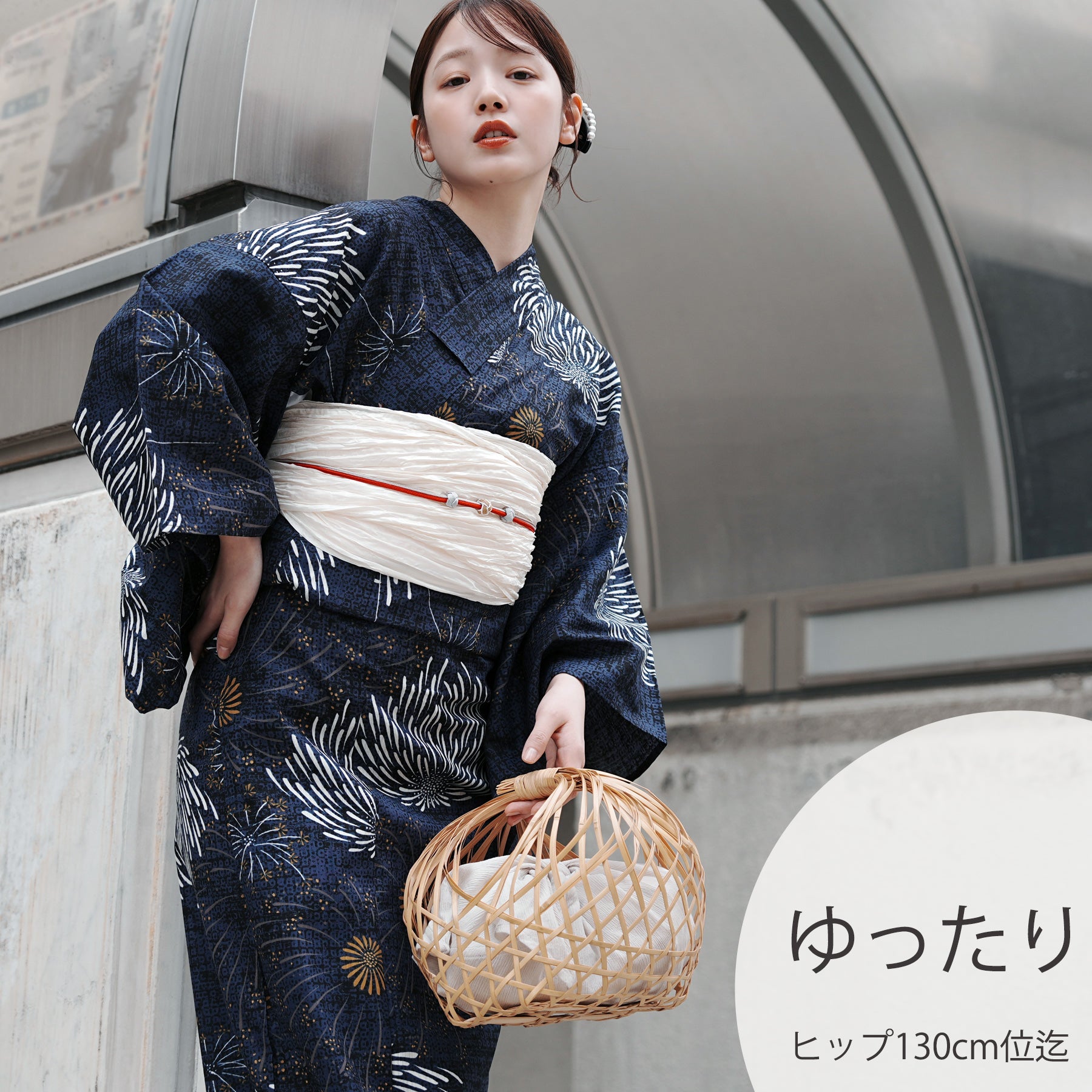 浴衣:3L ゆったりサイズ 適応身長 約155-165cm ヒップ130cm頃