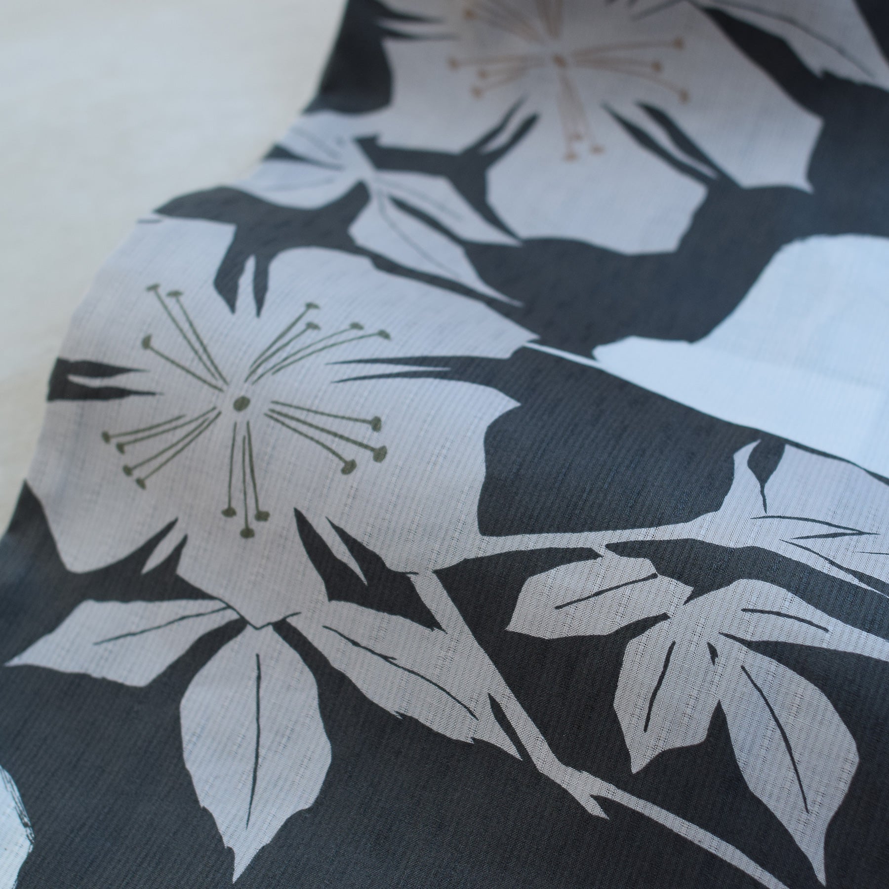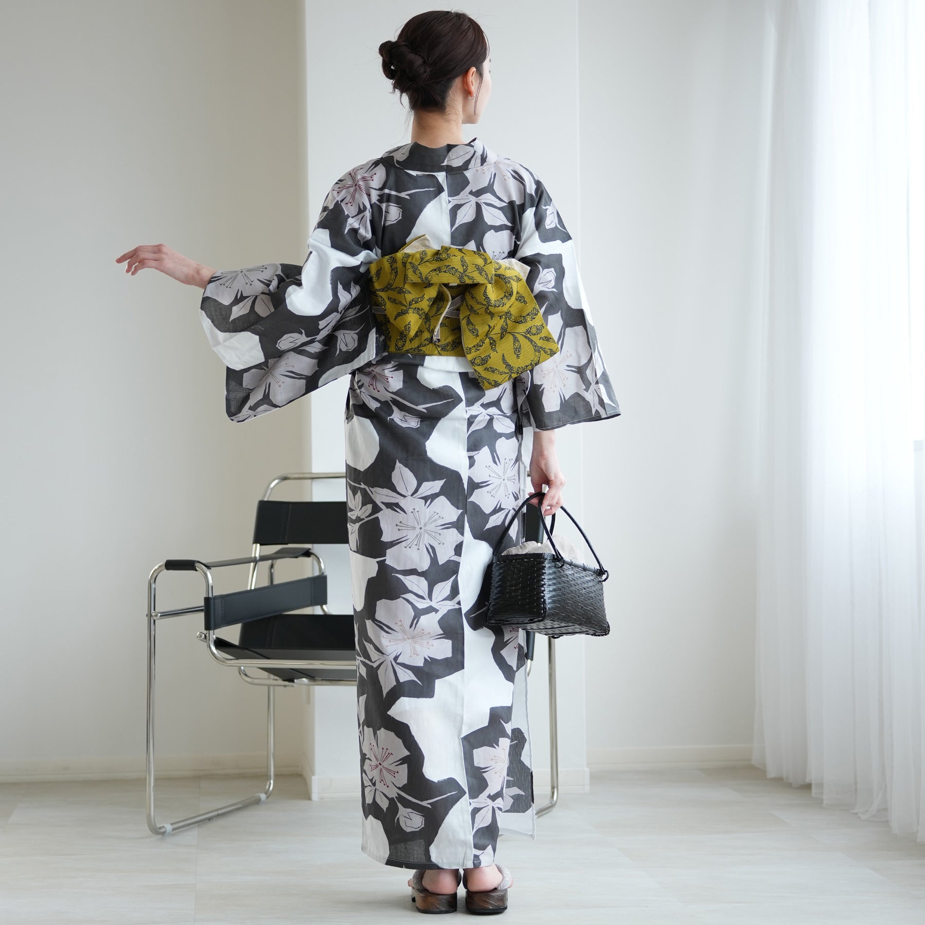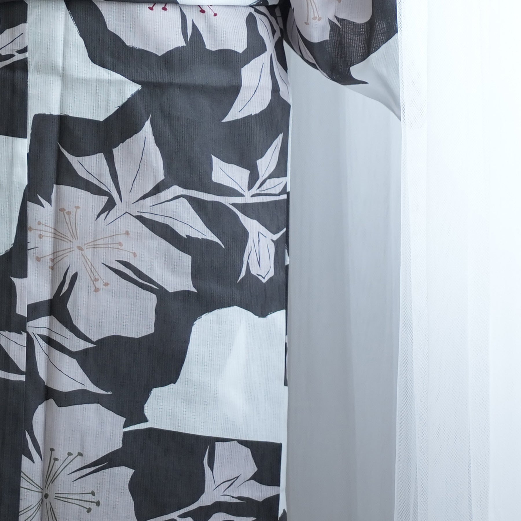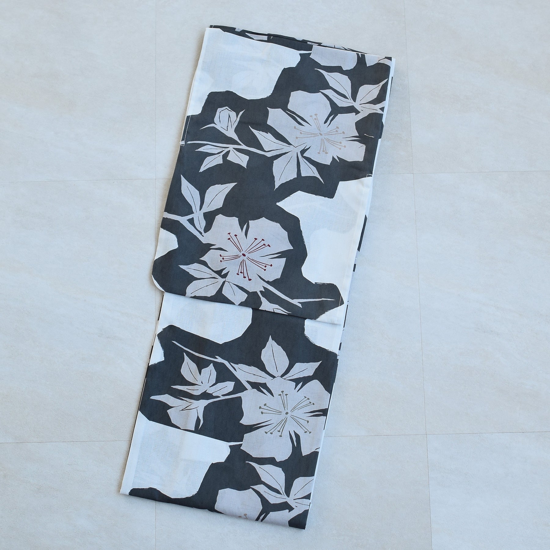 【単品浴衣 高級変わり織 白地に墨色の花切り絵】フリーサイズ 国産生地・国内染色 (5000269500)