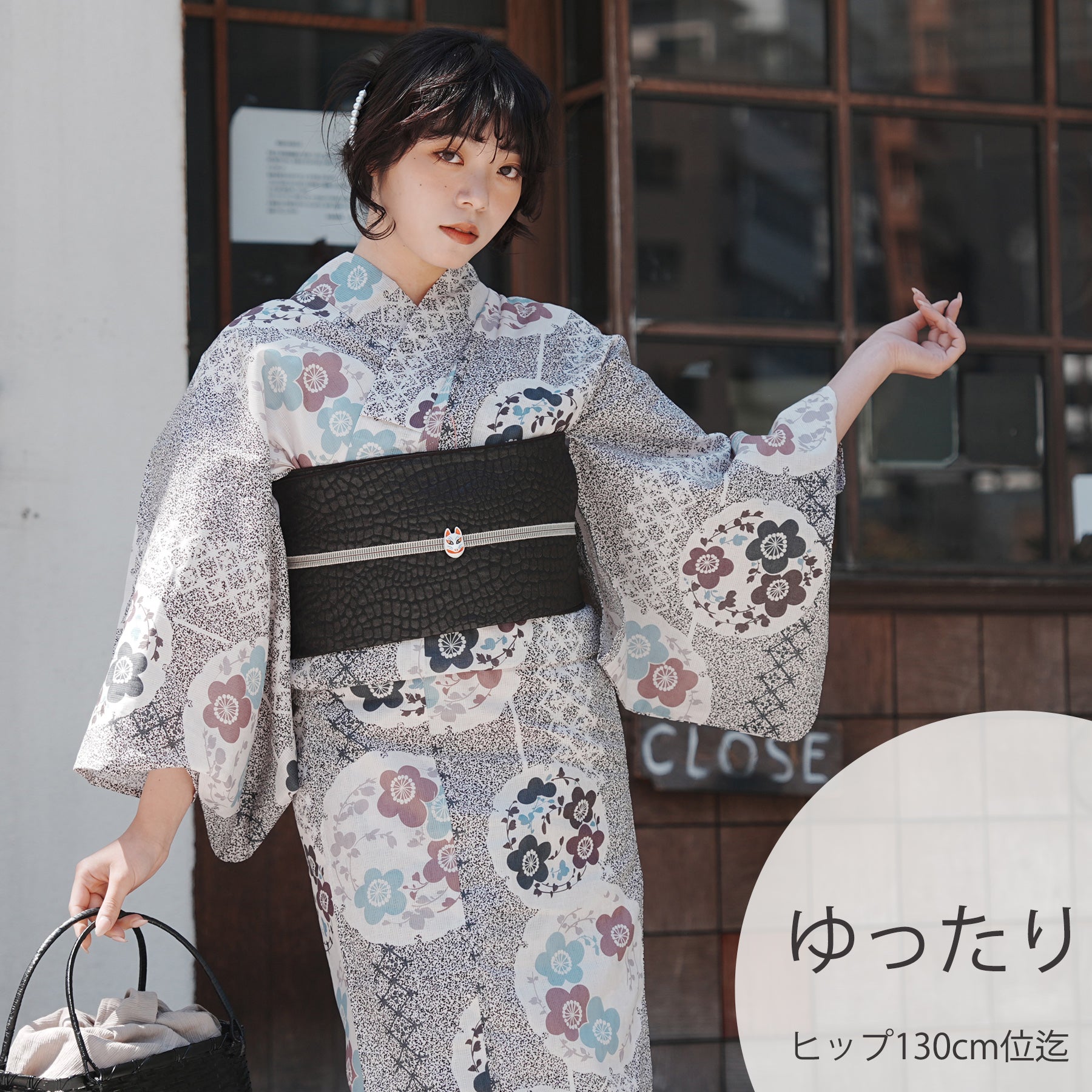 【単品浴衣 高級変わり織 墨黒の霧と梅雪輪】3Lサイズ 国産生地・国内染色 (5003272500)
