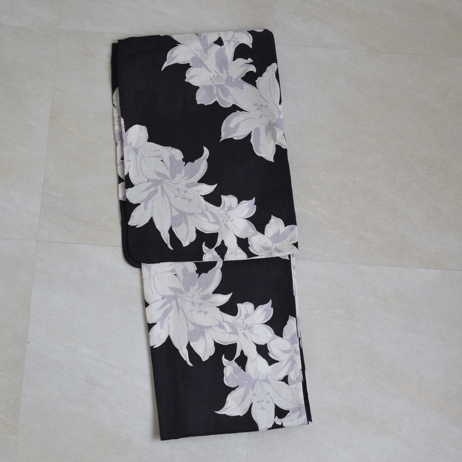 都会的で洗練された印象を与える「黒」をベースに、ダイナミックな百合の文様を配しました。