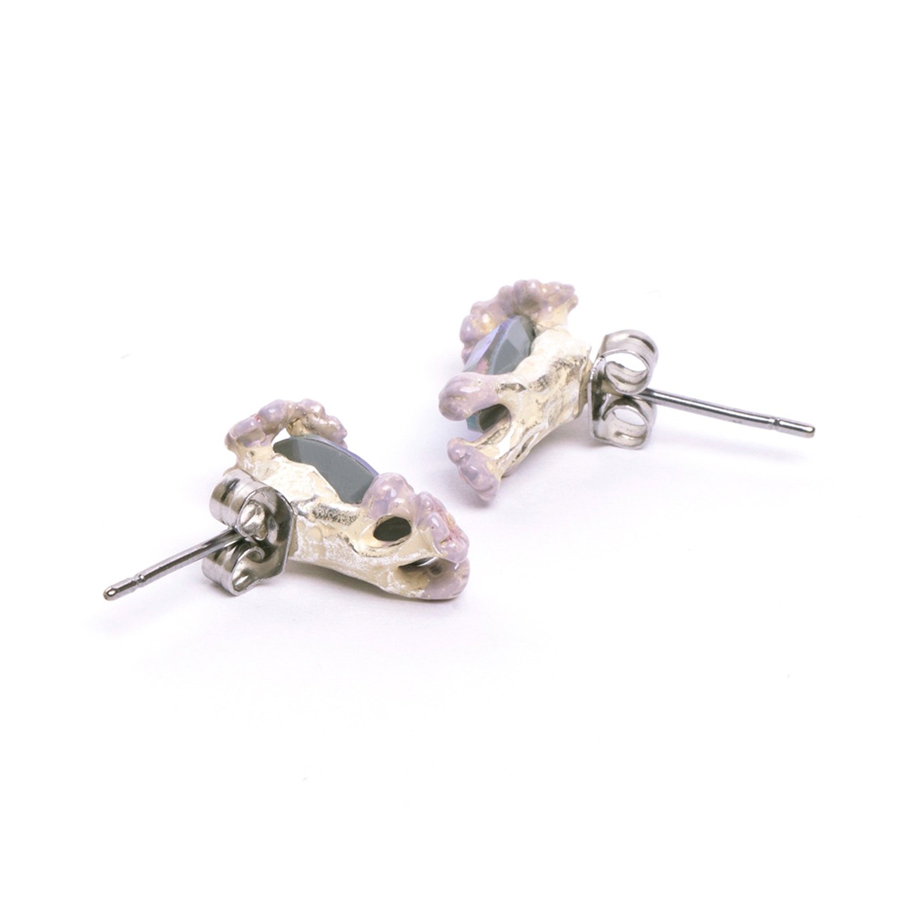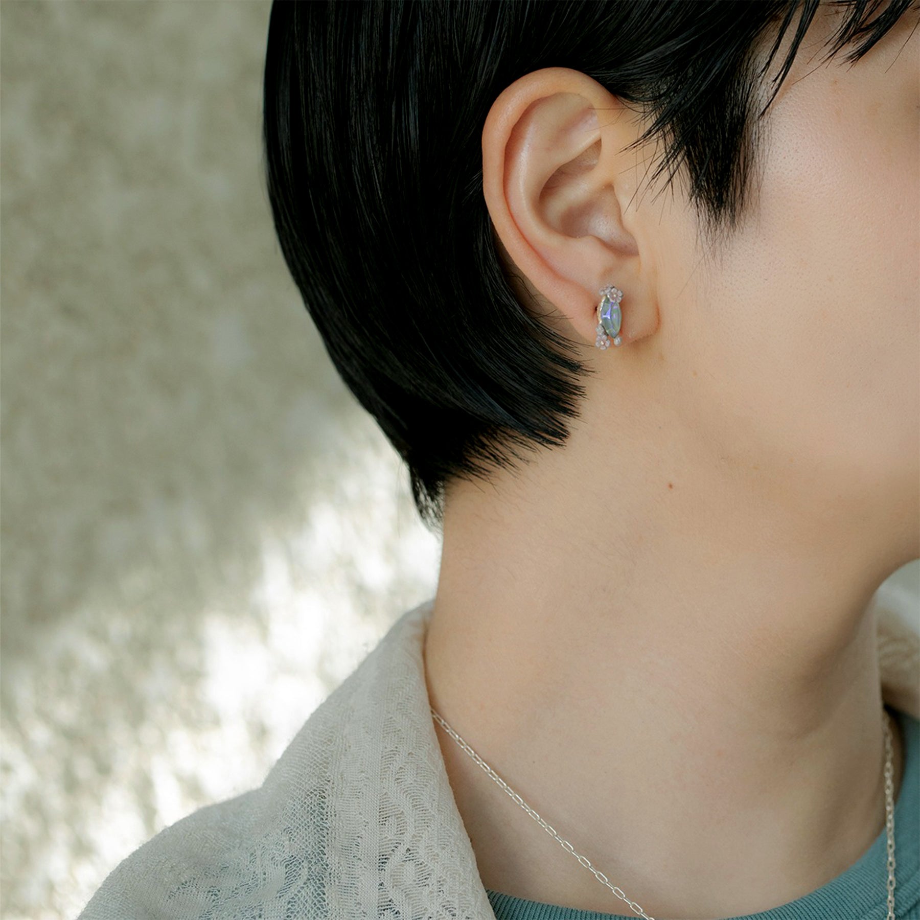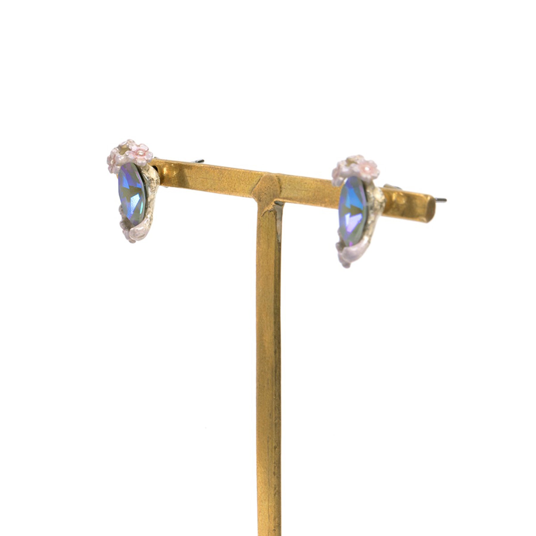 大きなカットガラスを桜の花が包み込んだようなデザインの可憐で儚げなピアス。