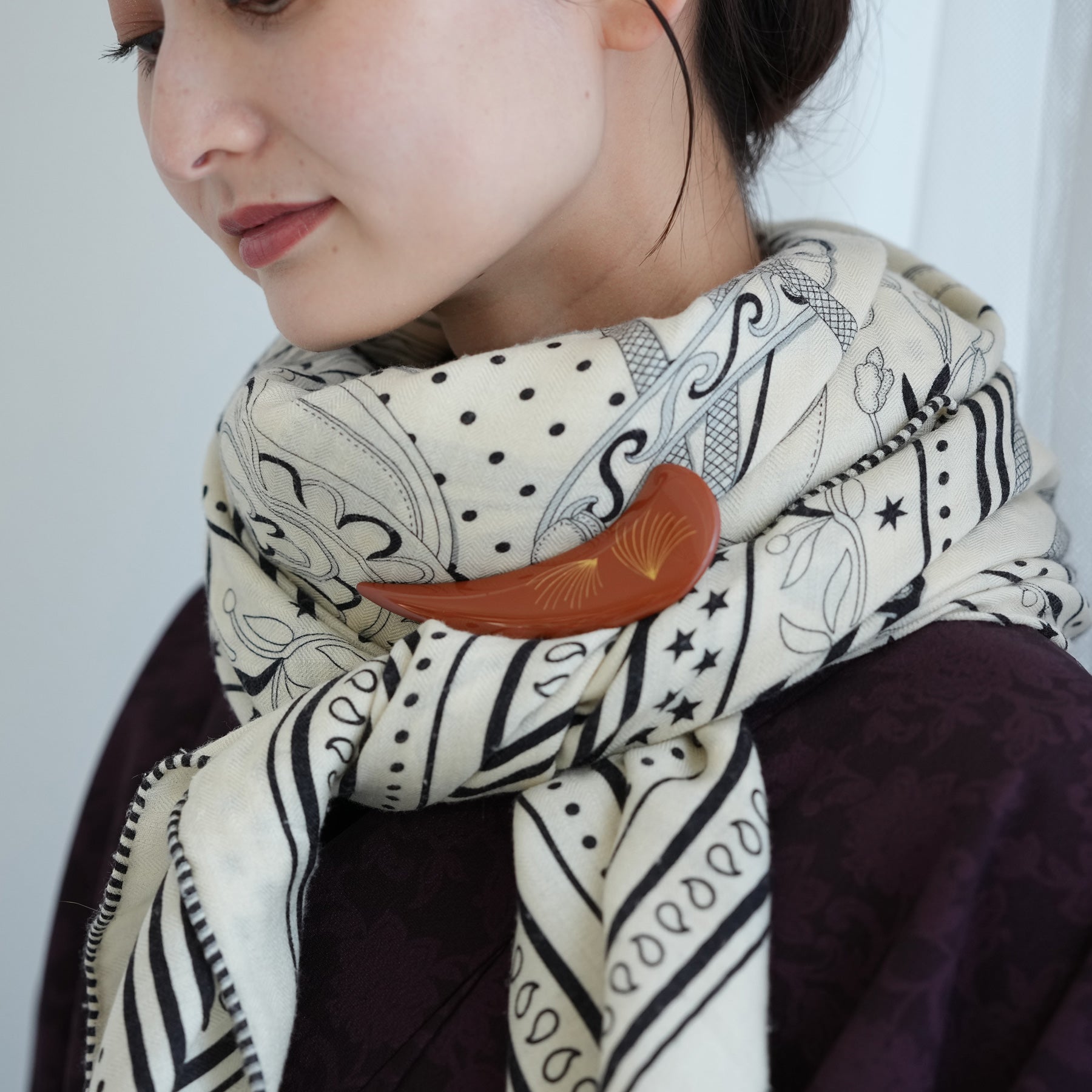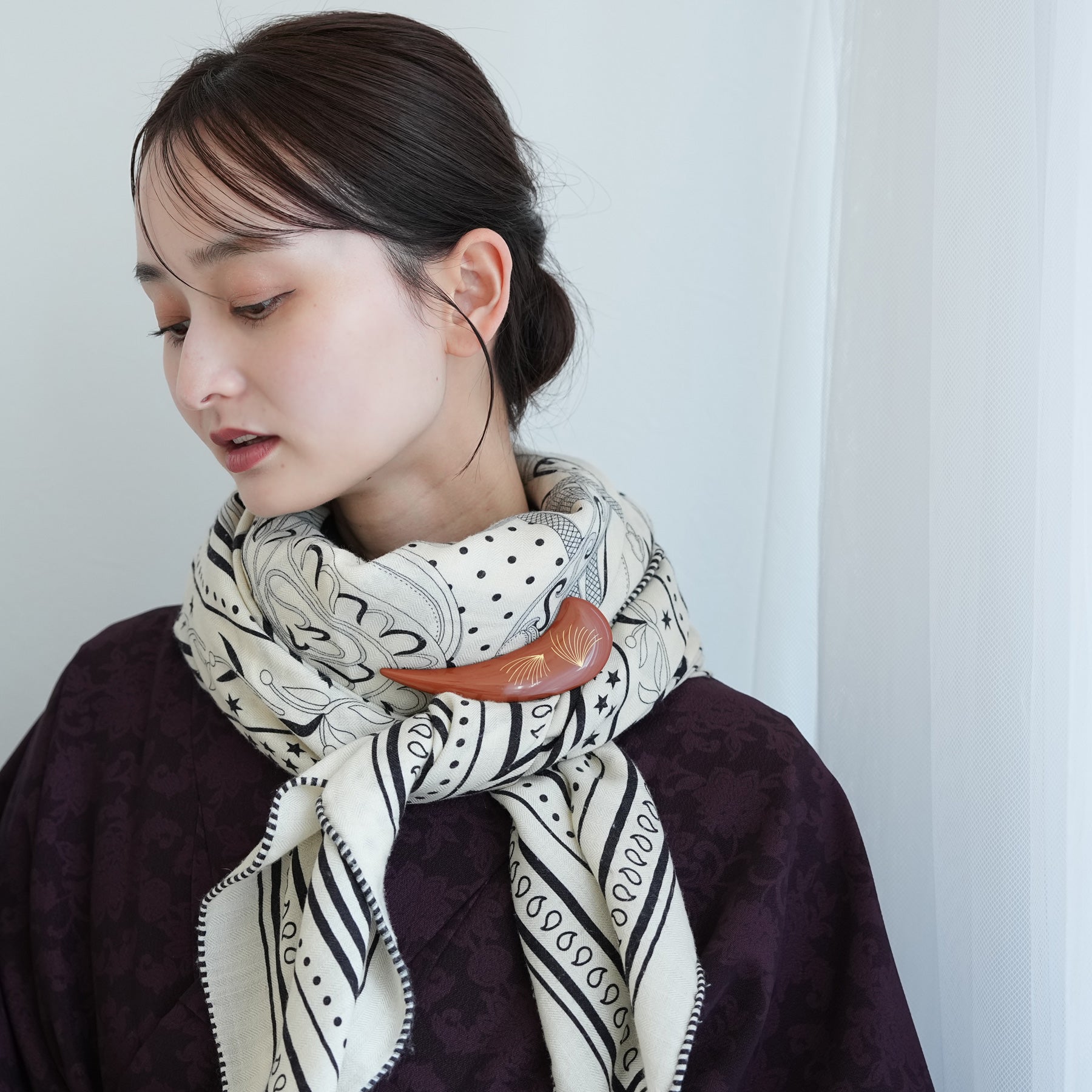 【ブローチ 蒔絵 朱赤つの 金ミニマル】日本製 和風アクセサリー ハンドメイド (2511606800)