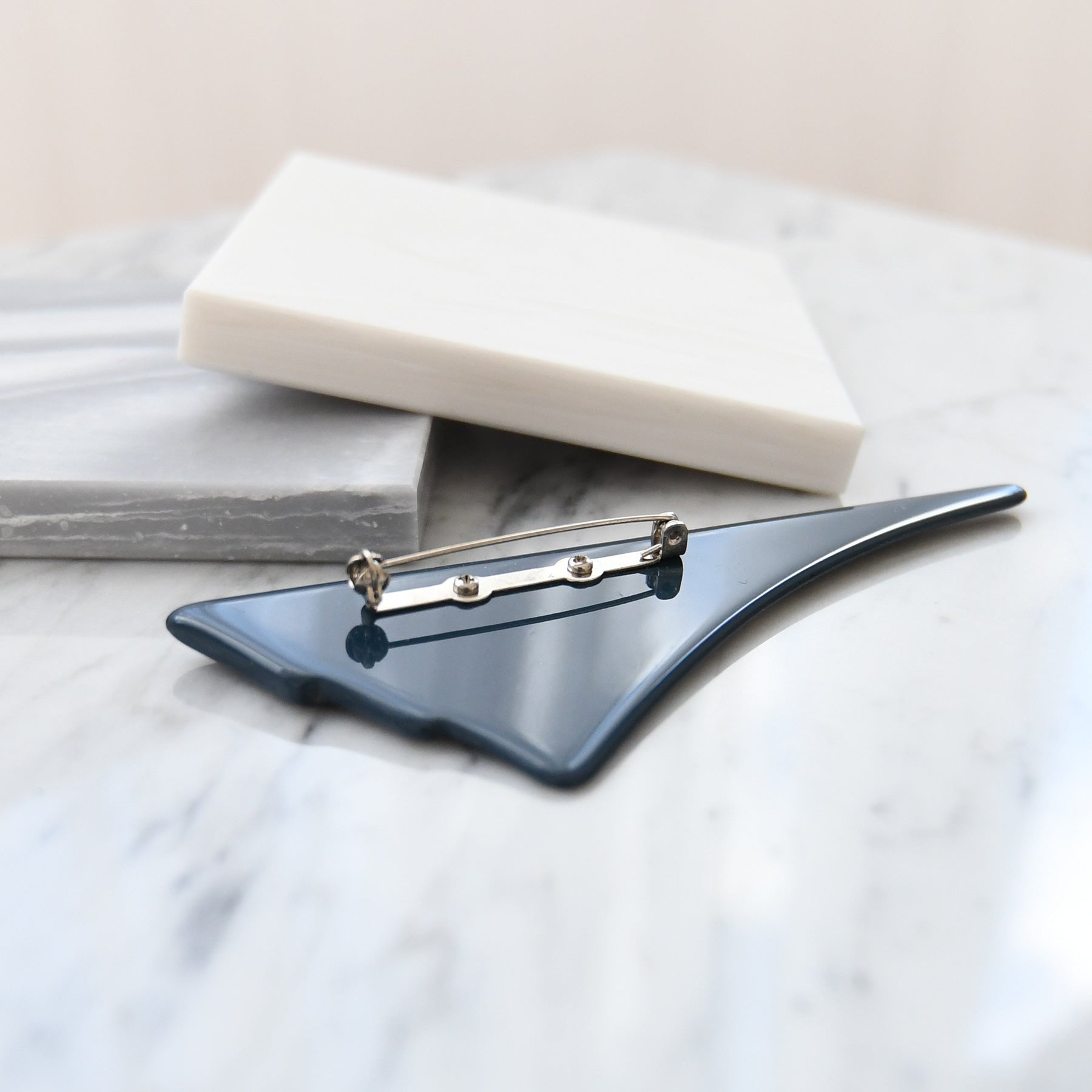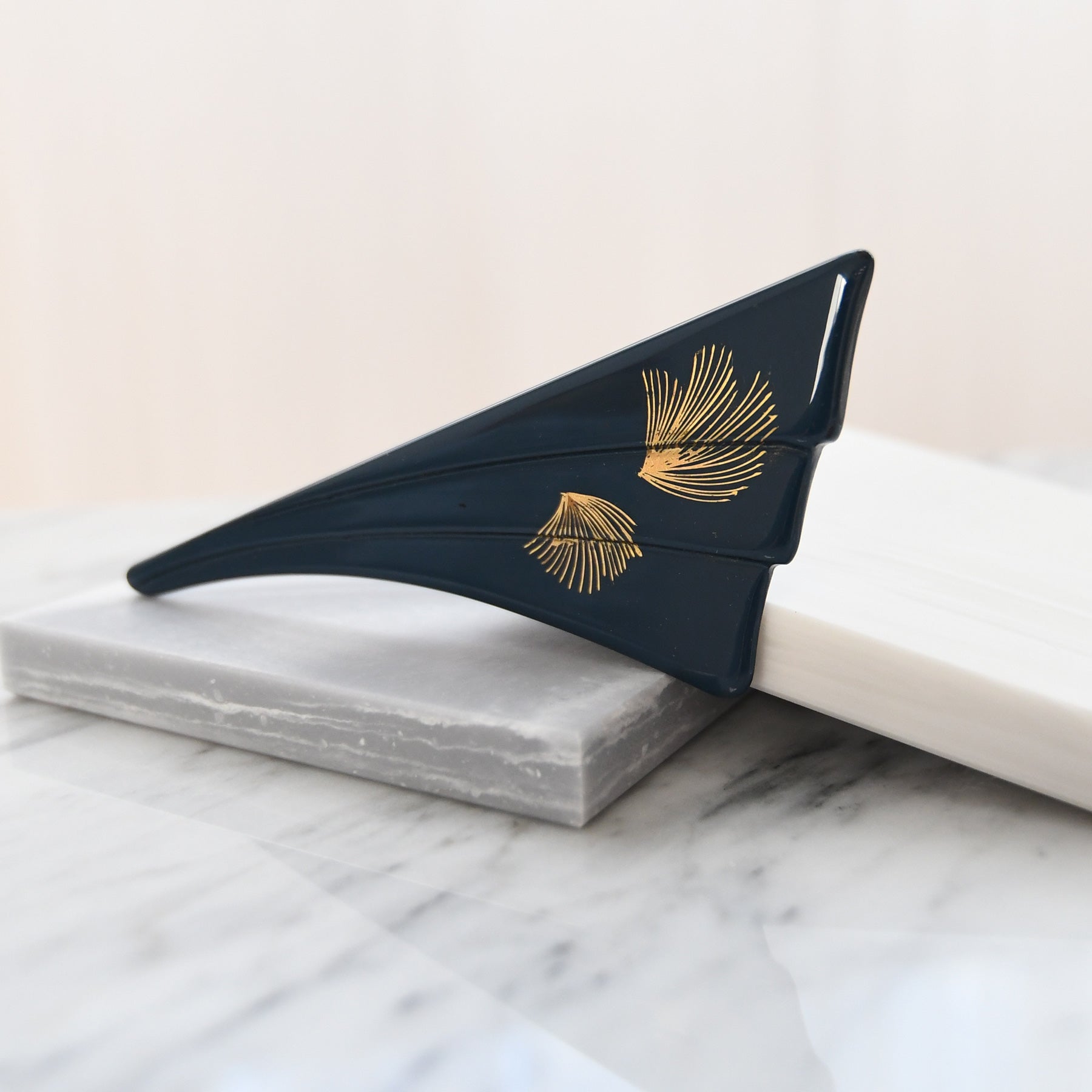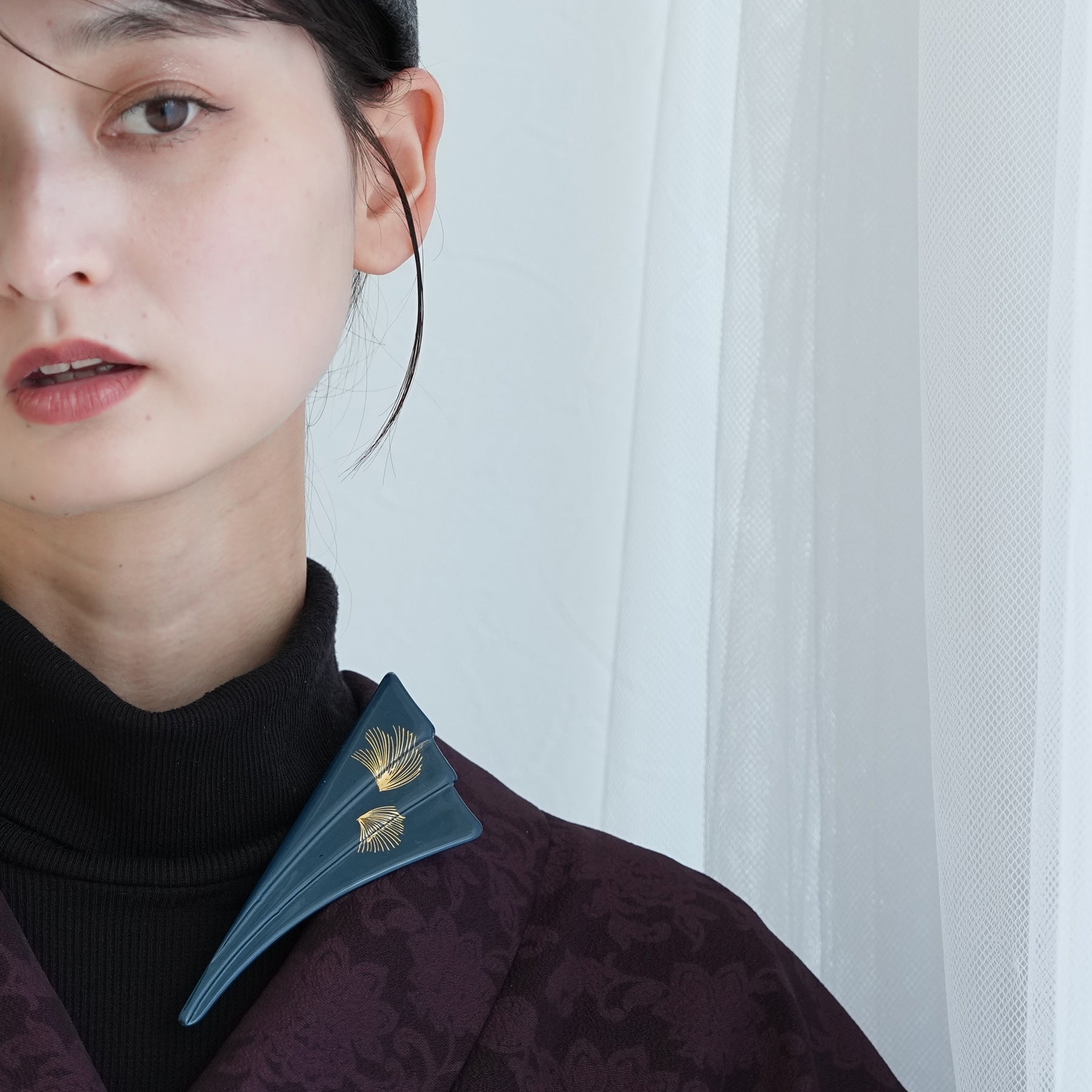【ブローチ 蒔絵 紺鼠扇 金モダン】日本製 和風アクセサリー ハンドメイド (2511607300)