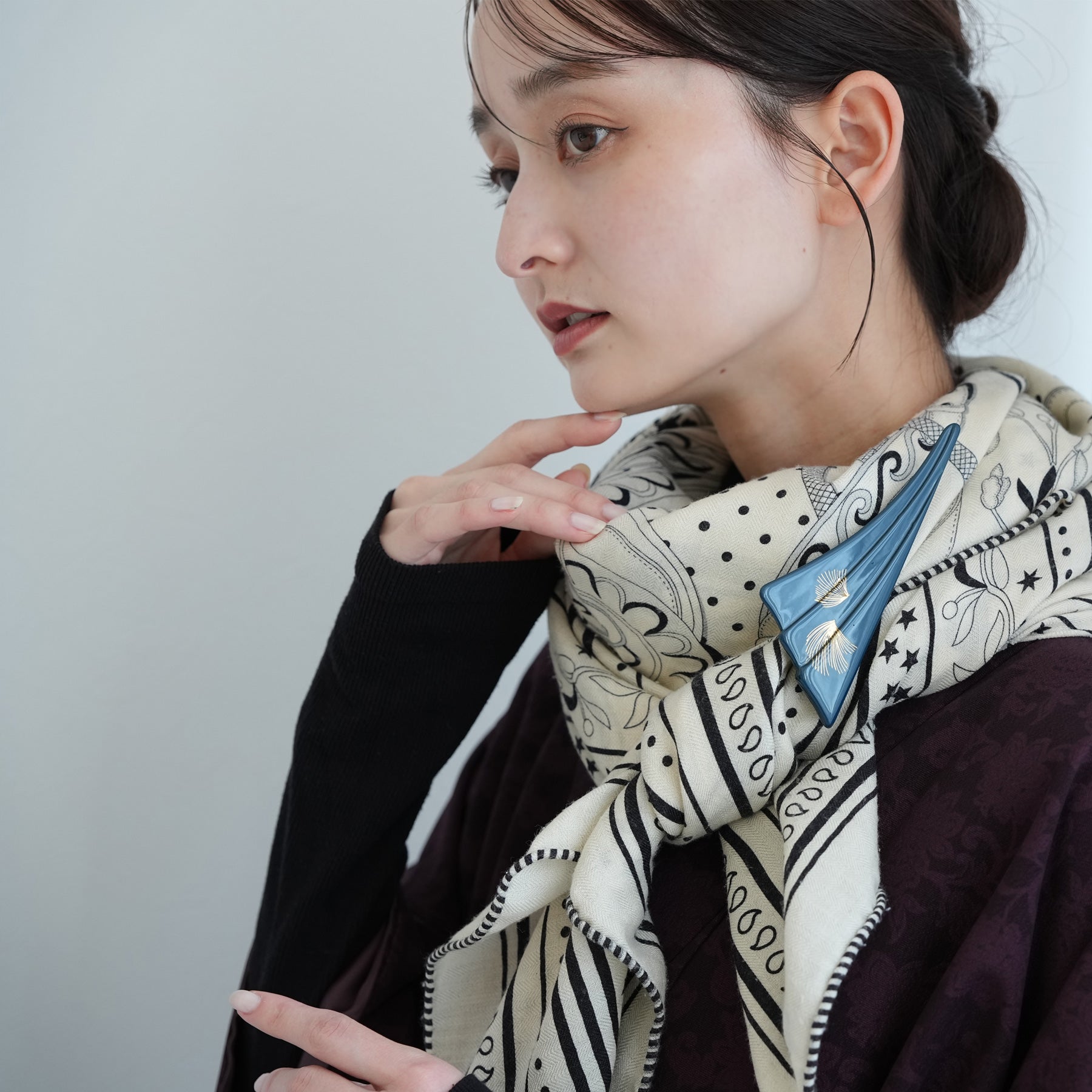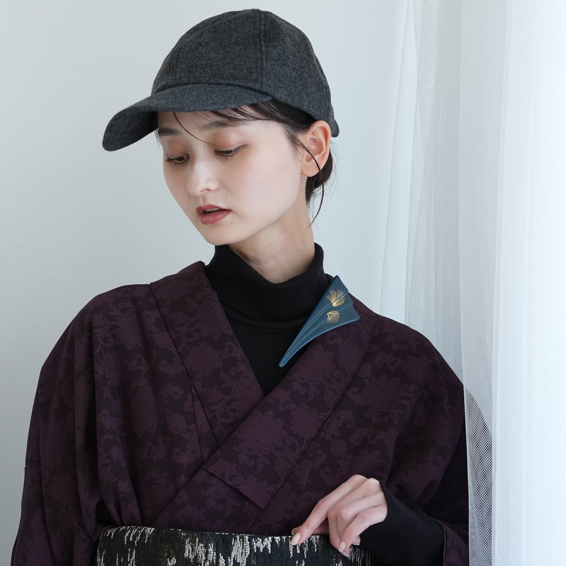 【ブローチ 蒔絵 紺鼠扇 金モダン】日本製  和風アクセサリー ハンドメイド (2511607300)