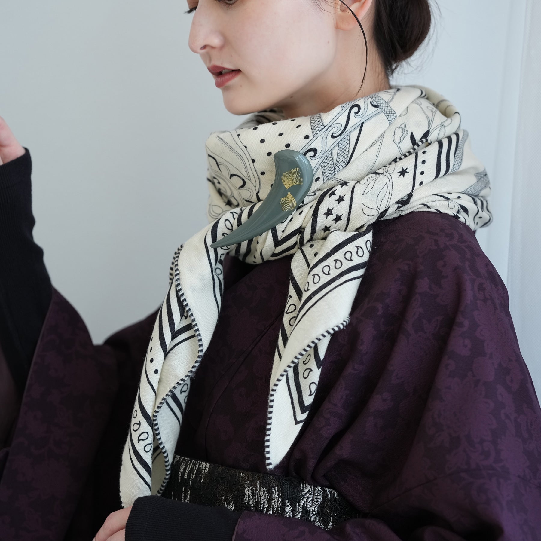 【ブローチ 蒔絵 墨つの 金モダン】日本製 和風アクセサリー ハンドメイド (2511607500)