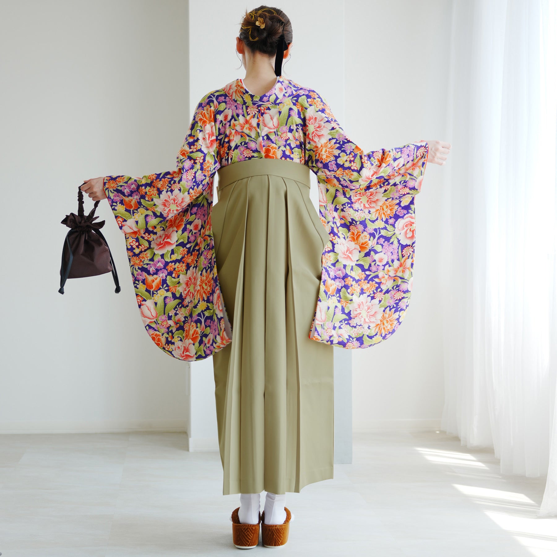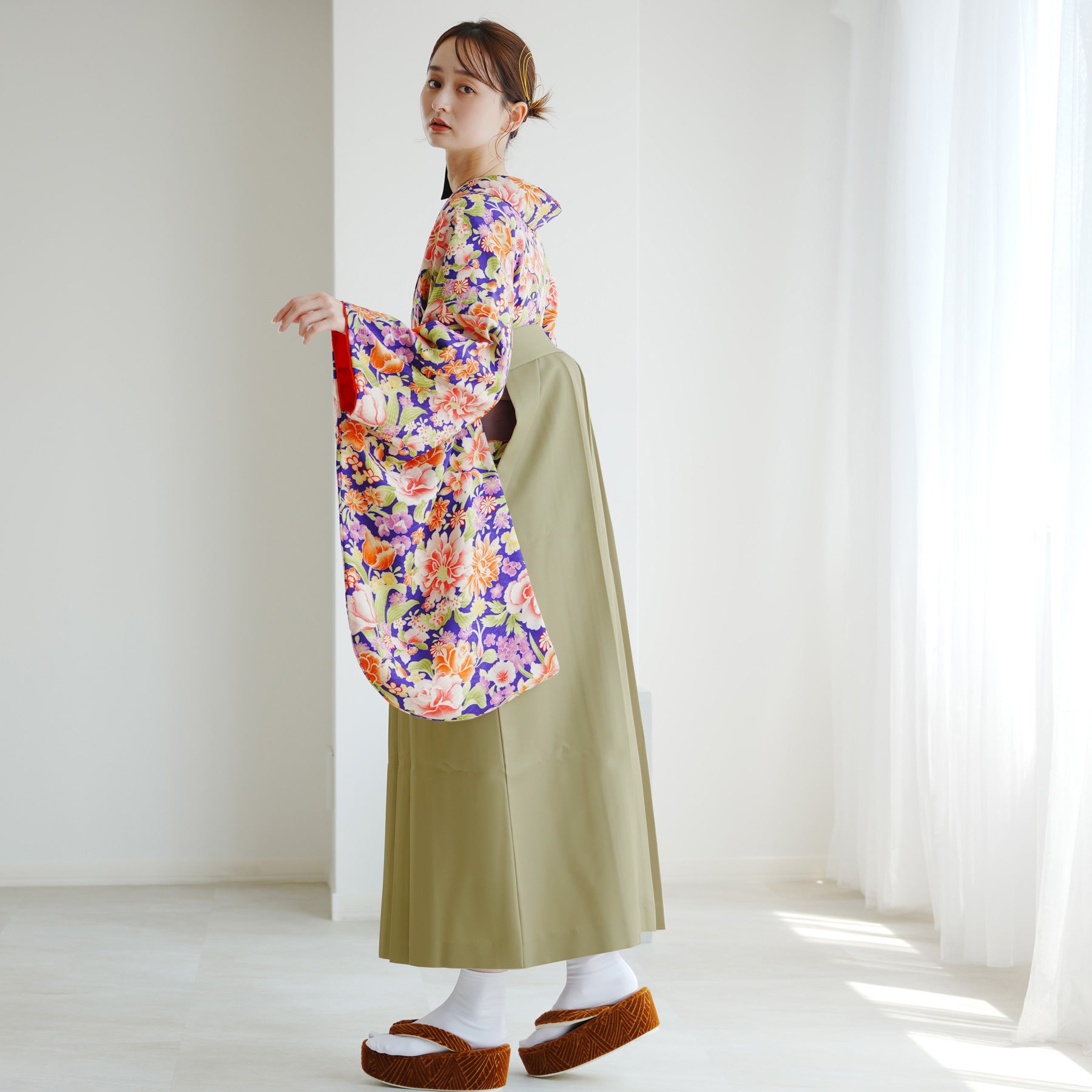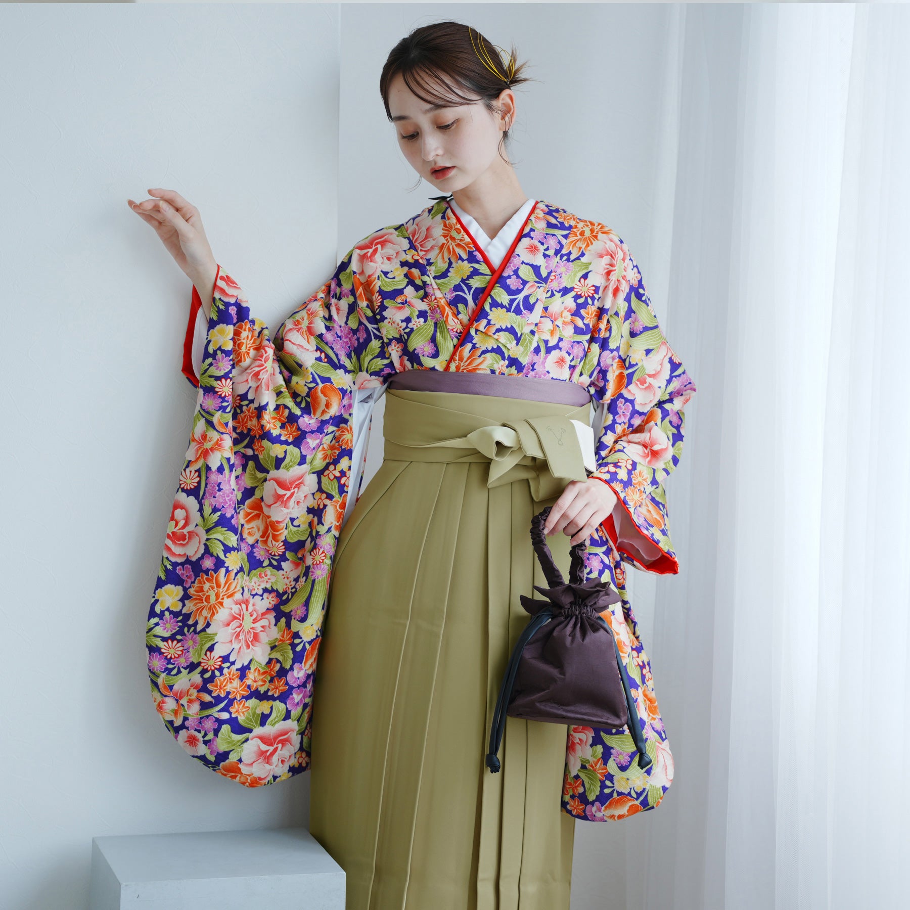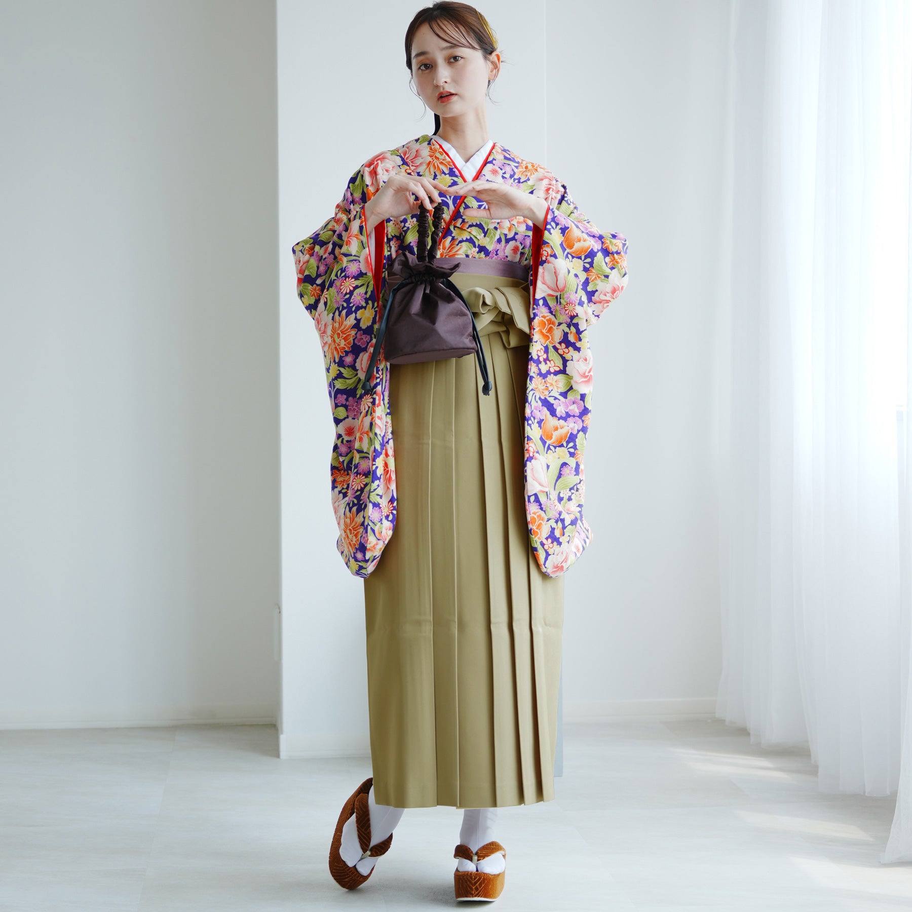 着物・袴・草履・バッグ・重ね襟(着物に縫い付済)・半巾帯・肌襦袢+長襦袢一体化インナー(白無地半襟付き)・前板・着付けベルト・ウエストベルト・腰ひも3本セット・伊達締め ・マジックベルト・衿芯・足袋(プレゼント)