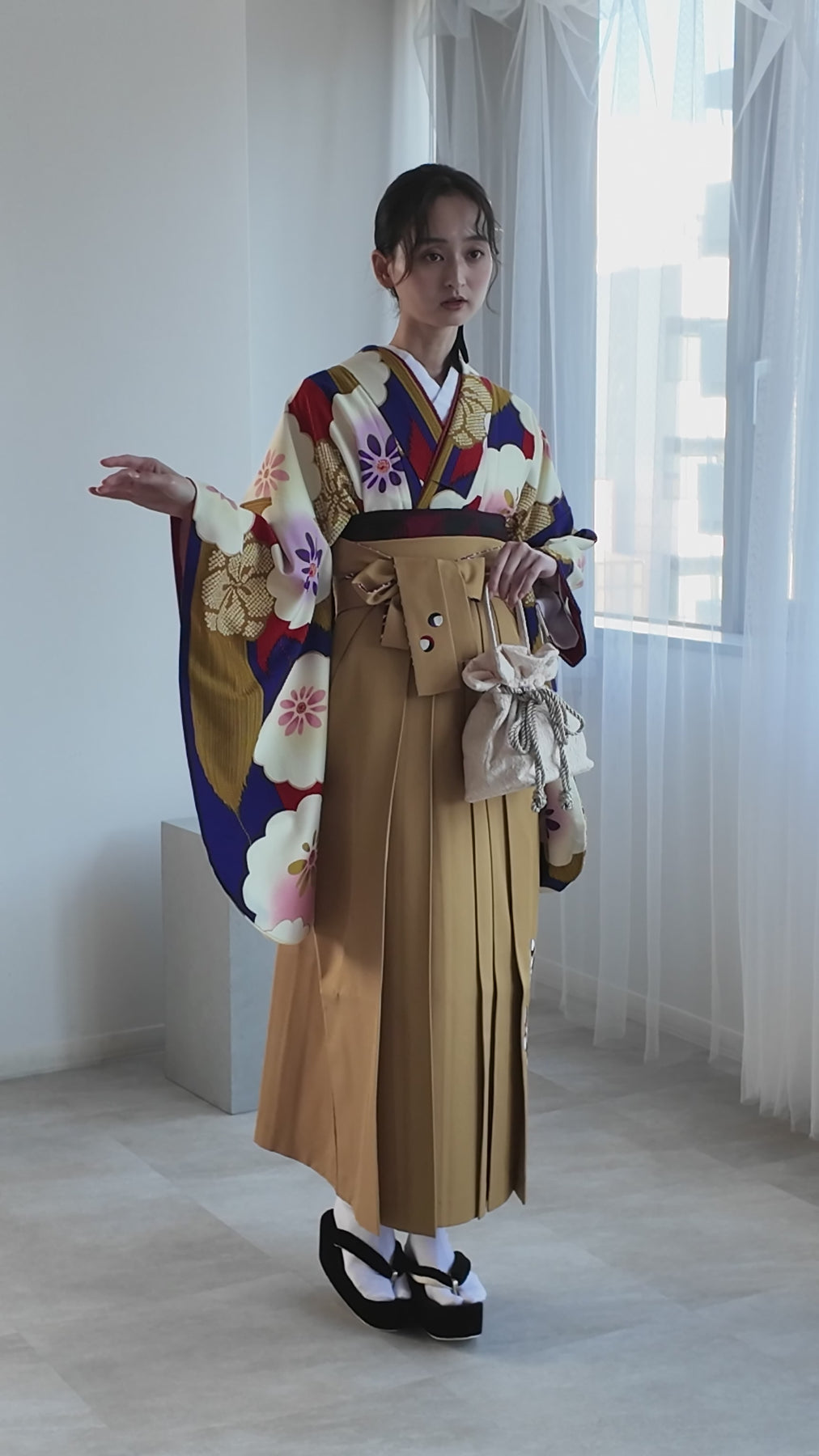 着物・袴・草履・バッグ・重ね襟(着物に縫い付済)・半巾帯・肌襦袢+長襦袢一体化インナー(白無地半襟付き)・前板・着付けベルト・ウエストベルト・腰ひも3本セット・伊達締め ・マジックベルト・衿芯・足袋(プレゼント)