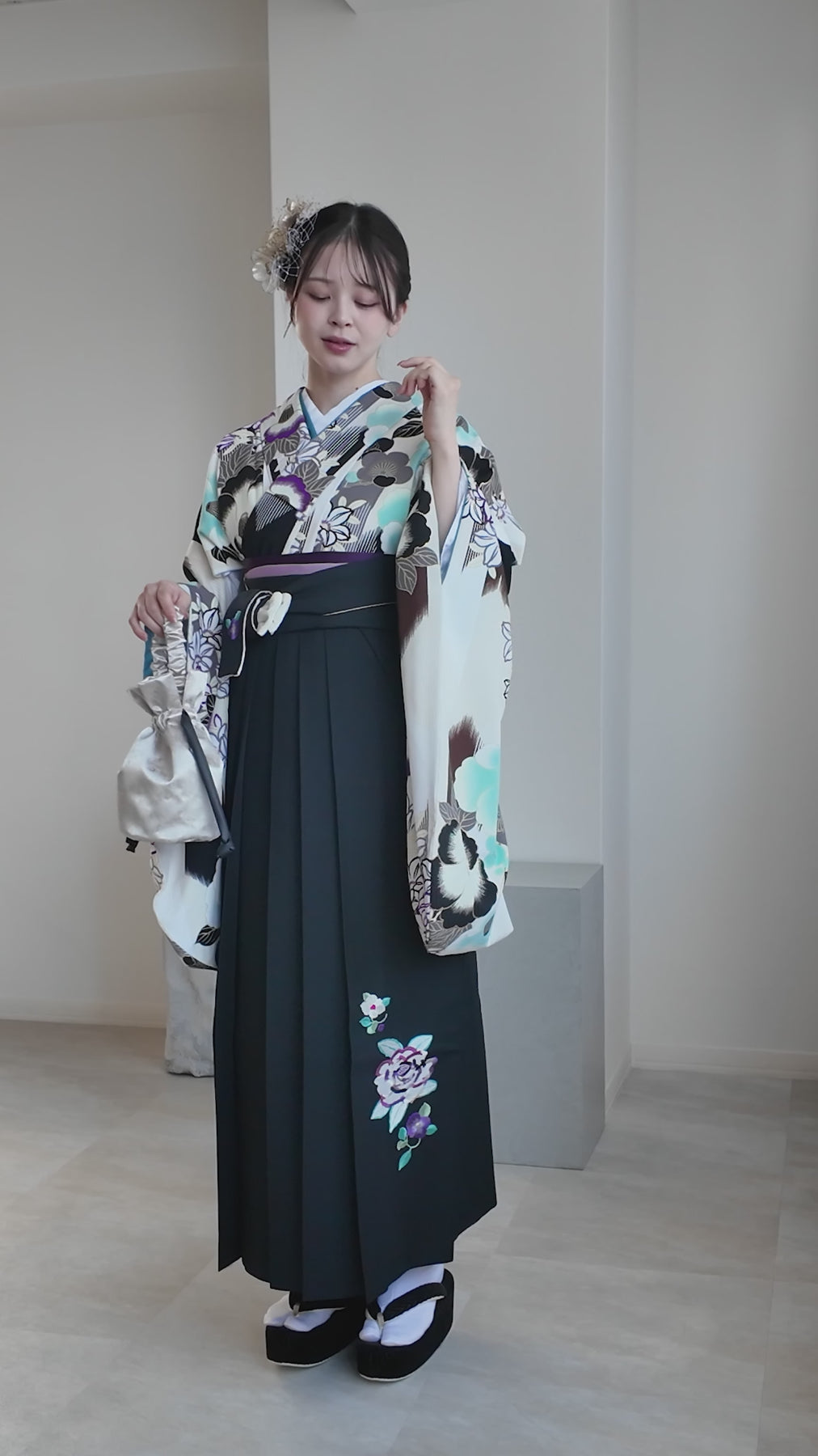 着物・袴・草履・バッグ・重ね襟(着物に縫い付済)・半巾帯・肌襦袢+長襦袢一体化インナー(白無地半襟付き)・前板・着付けベルト・ウエストベルト・腰ひも3本セット・伊達締め ・マジックベルト・衿芯・足袋(プレゼント)