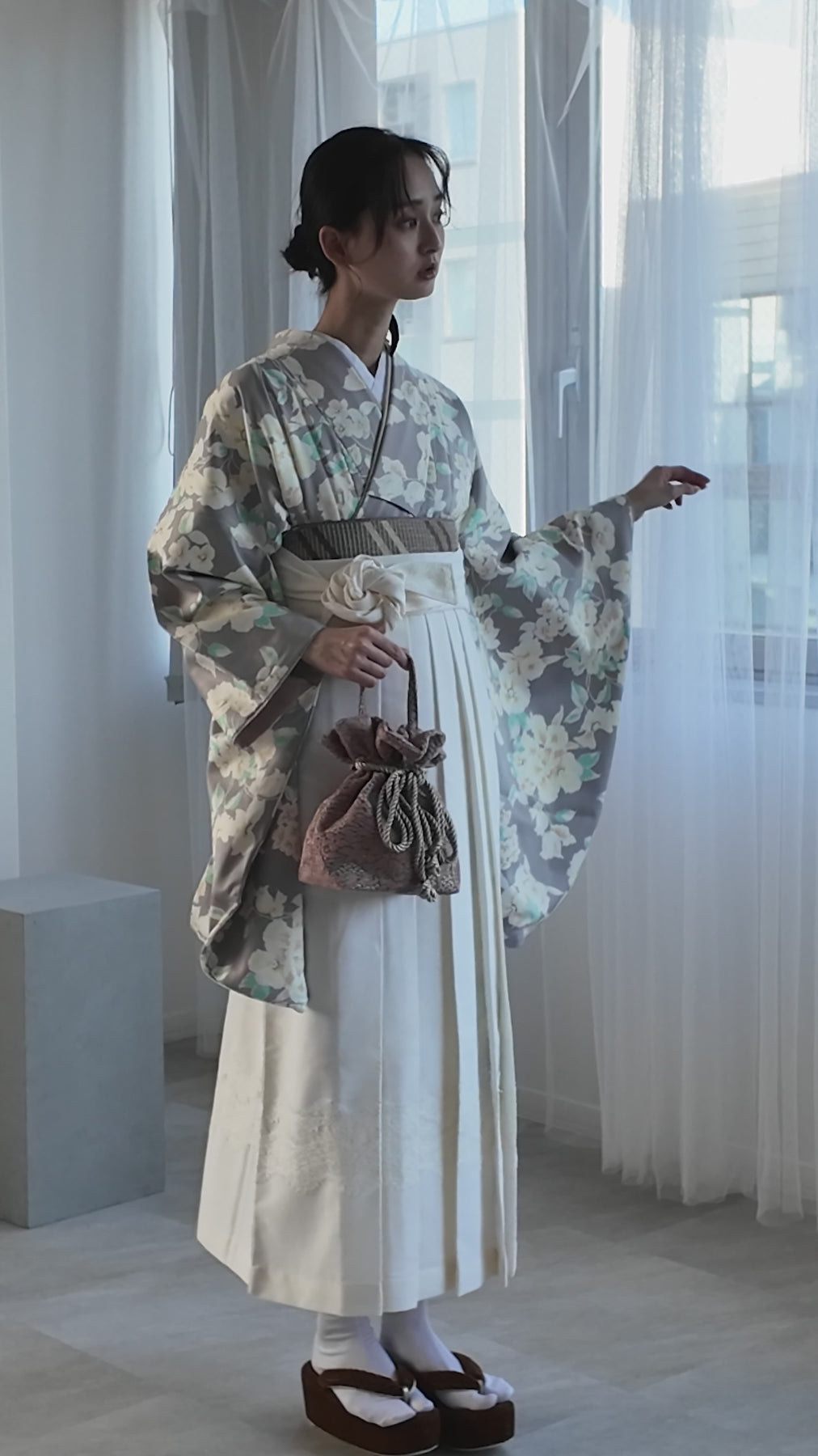 着物・袴・草履・バッグ・重ね襟(着物に縫い付済)・半巾帯・肌襦袢+長襦袢一体化インナー(白無地半襟付き)・前板・着付けベルト・ウエストベルト・腰ひも3本セット・伊達締め ・マジックベルト・衿芯・足袋(プレゼント)