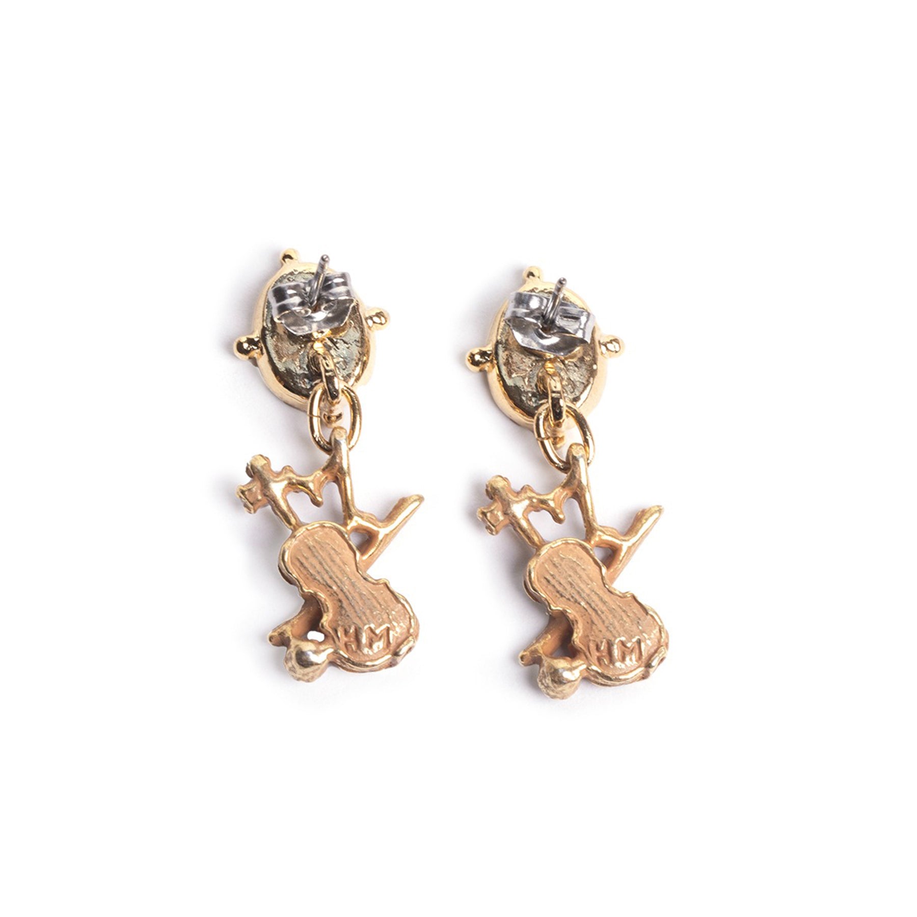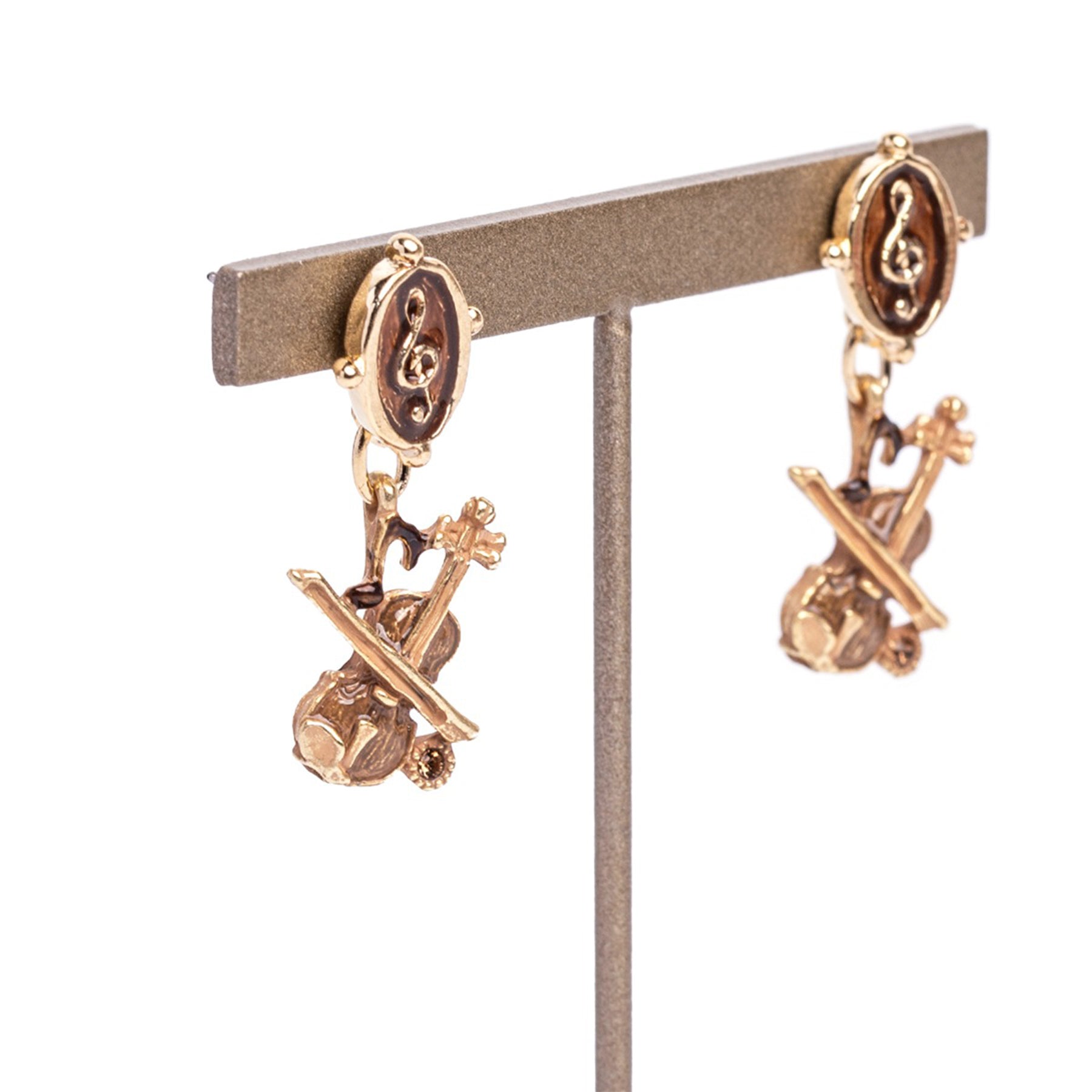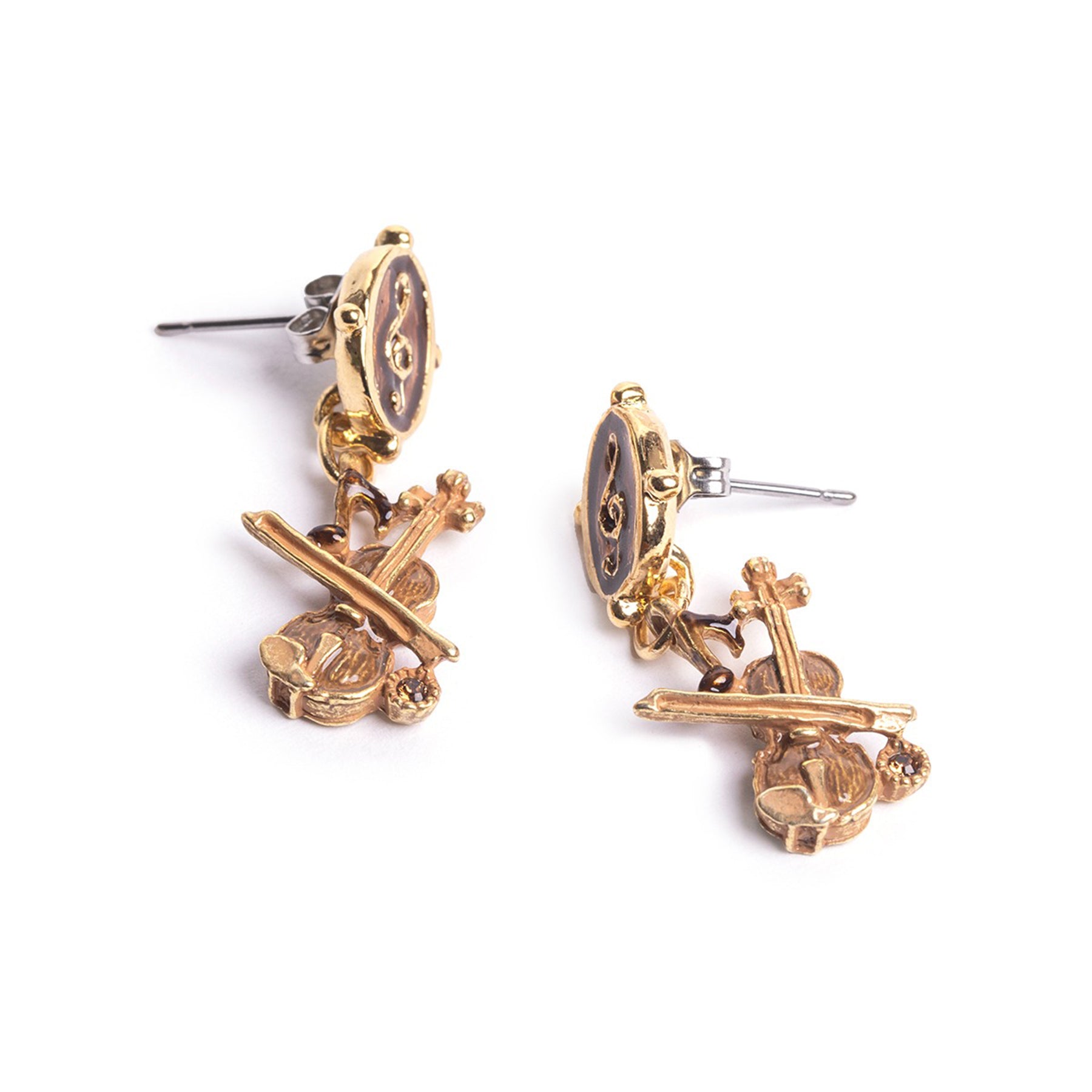 色味をそろえたブラウンのカットガラスが上品に輝き、シックな印象を際立たせます。 バイオリンの木目まで丁寧に再現された、繊細で美しいアクセサリーです。