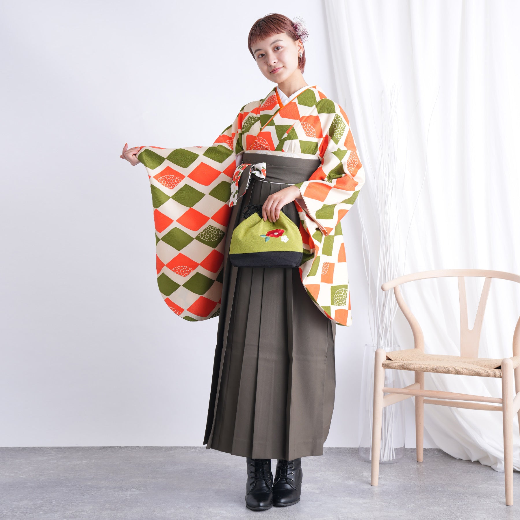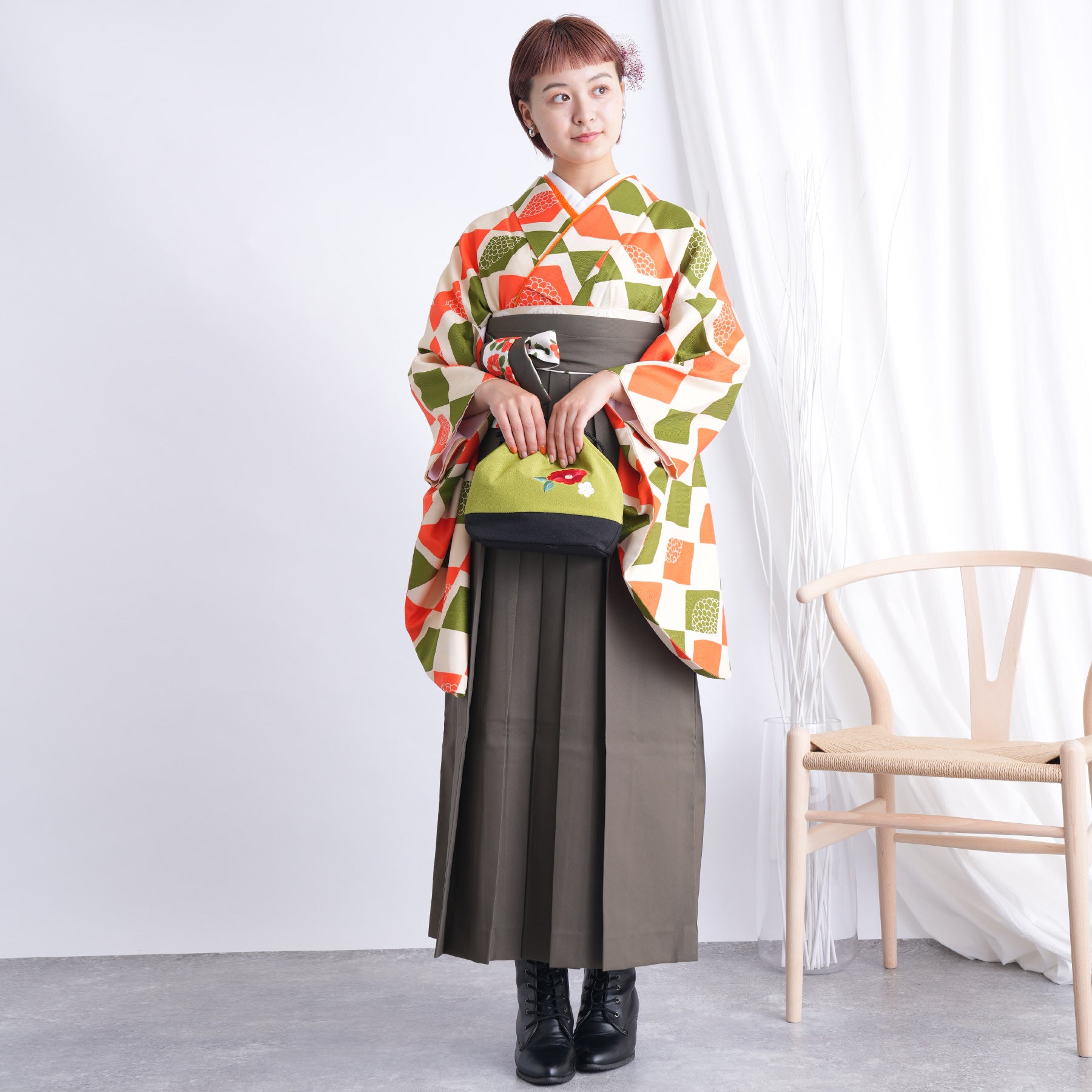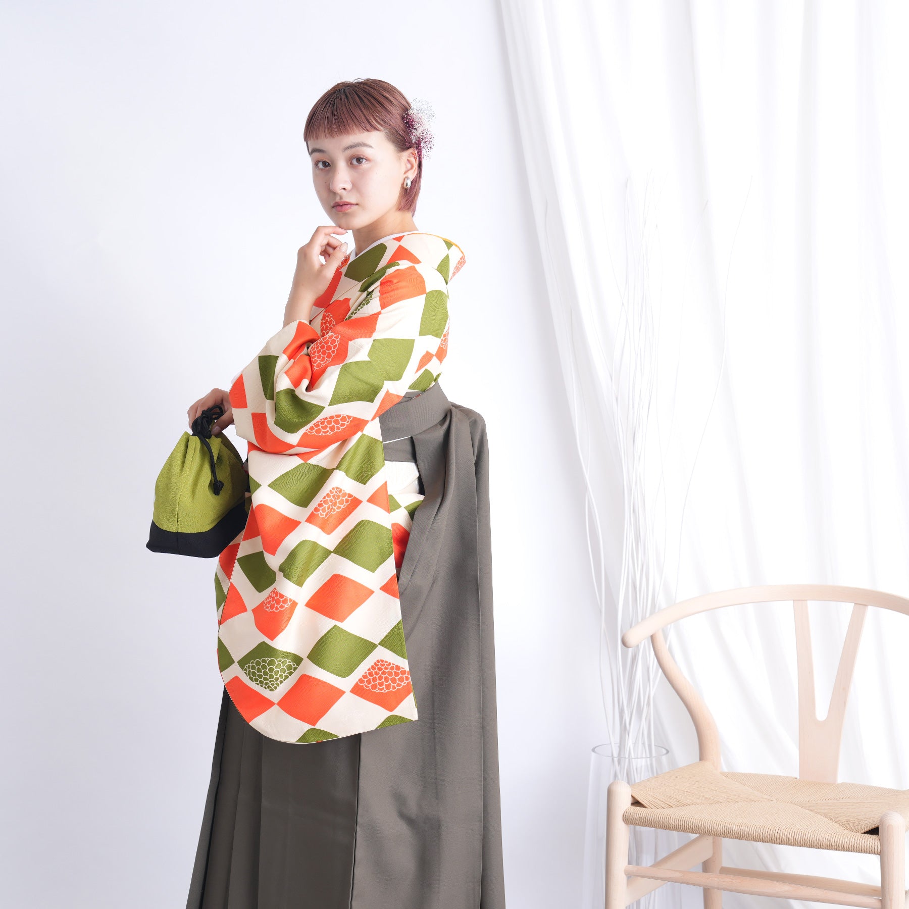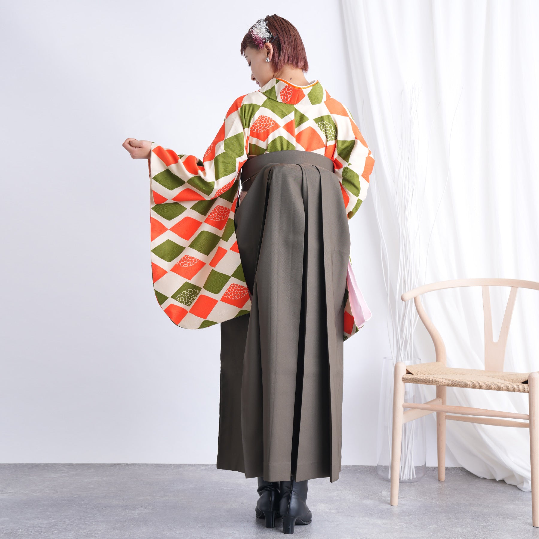【リサイクル着物】二尺袖着物 単品 販売品 中古 USED 袴用 短丈 ダイヤ レトロ 卒業式 ひよこ商店 (5175646500)【中古販売】