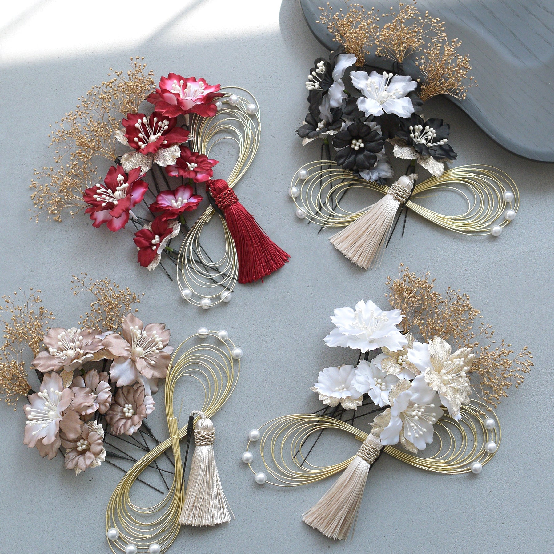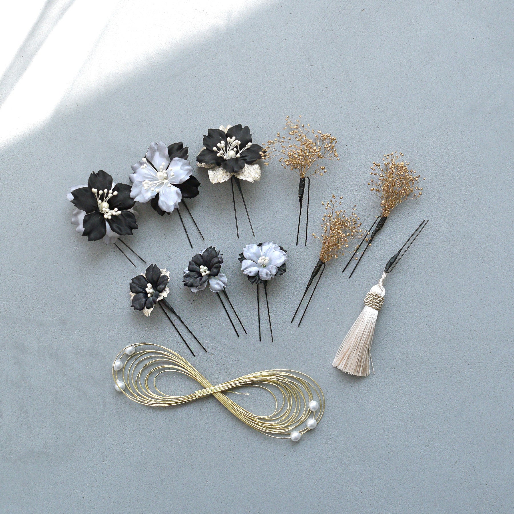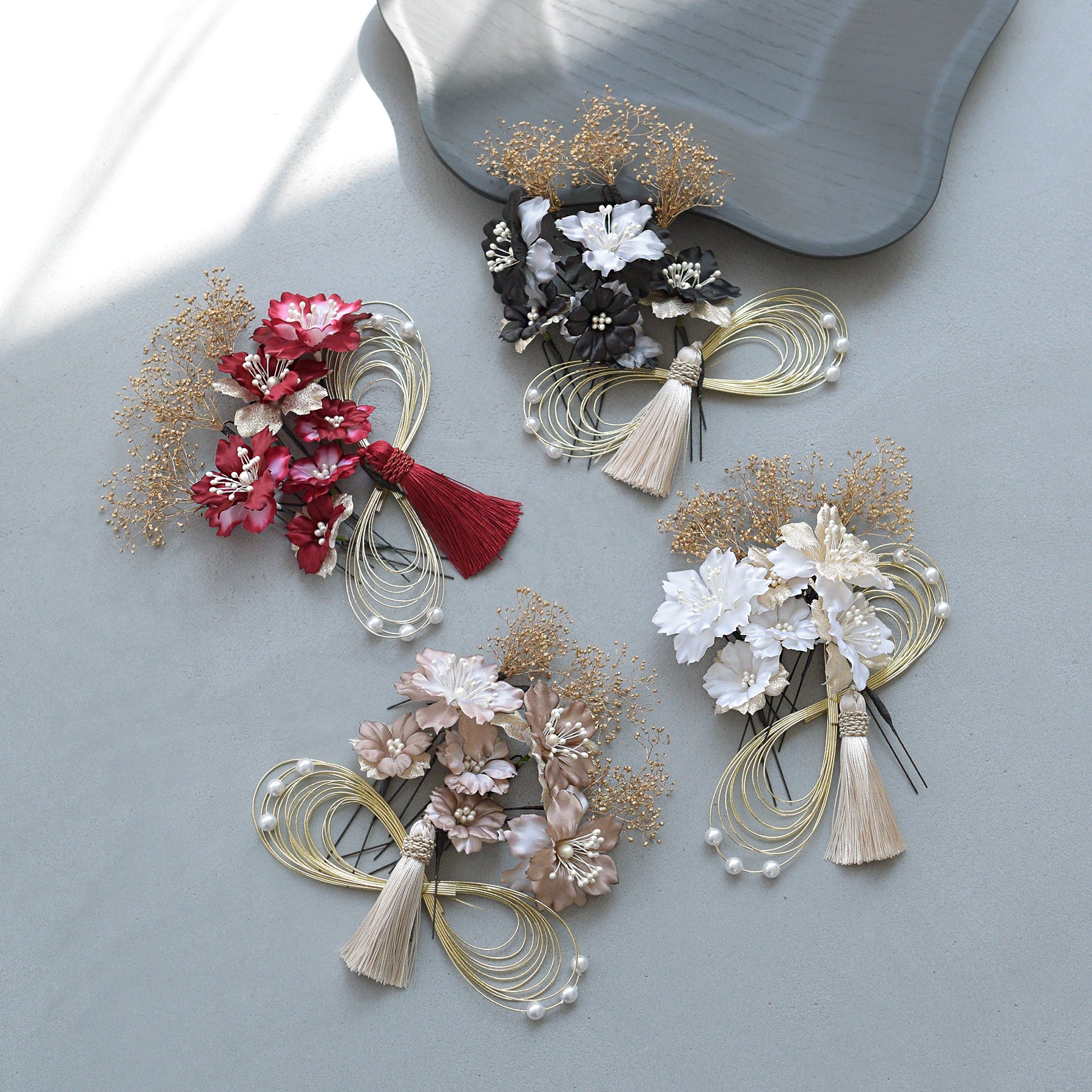 【髪飾り Uピン11点セット】パール水引に桜花かすみ草 ドライフラワー タッセル ヘアアクセサリー 日本製 成人式振袖や卒業式袴にも(5432644001)