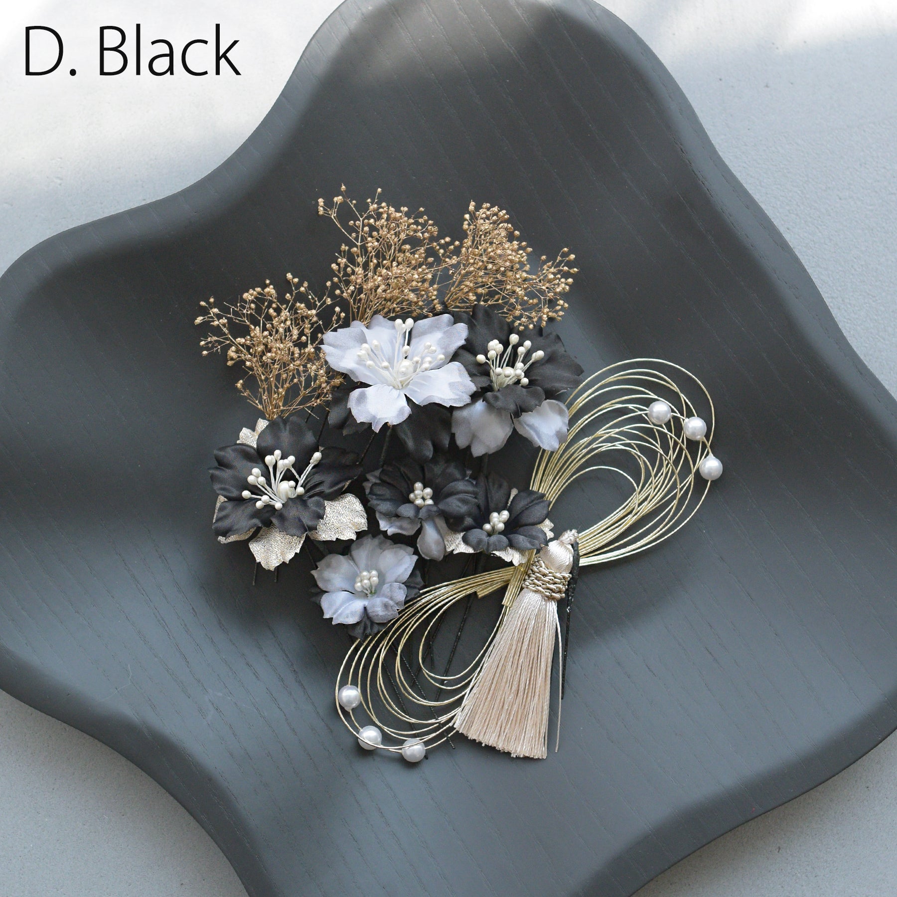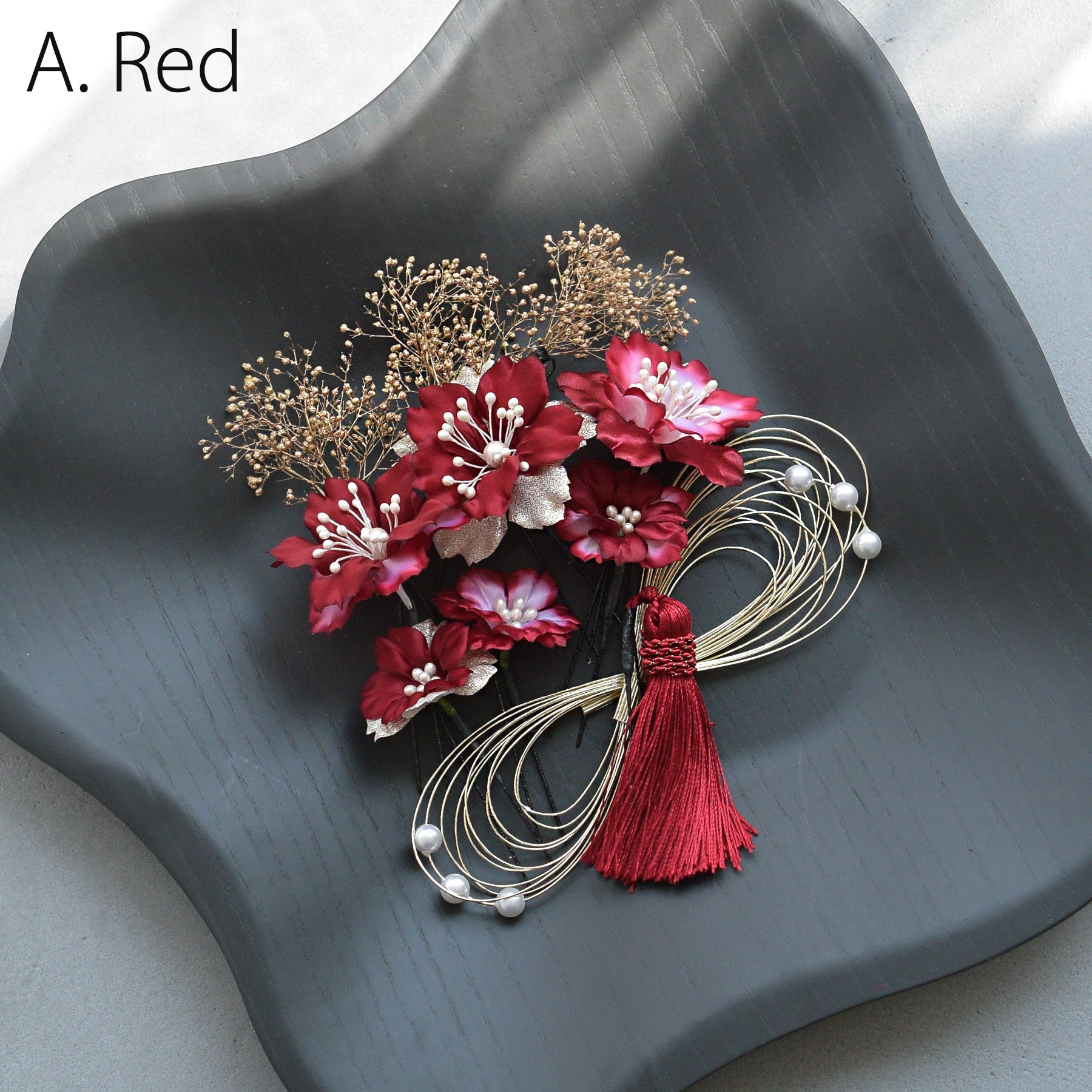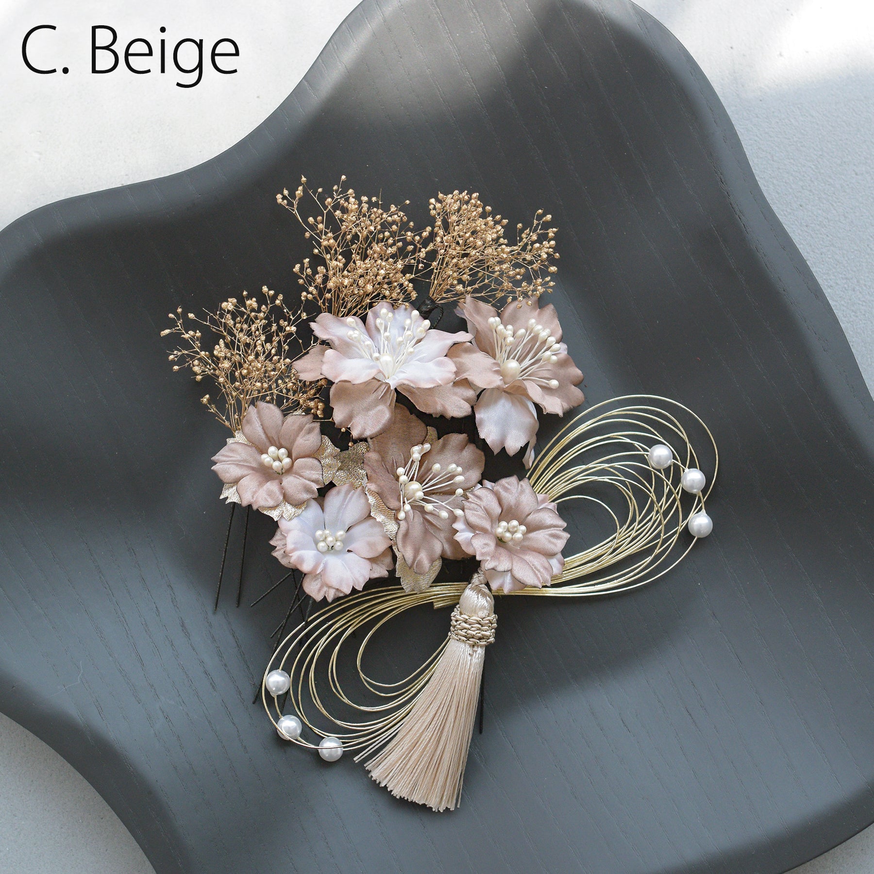 【髪飾り Uピン11点セット】パール水引に桜花かすみ草  ドライフラワー タッセル ヘアアクセサリー 日本製 成人式振袖や卒業式袴にも(5432644001)